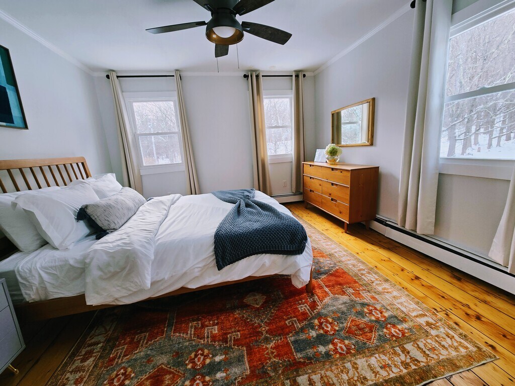 Spacious, updated 3-bed / 2-bath home with 2 additional flex spaces for office, guest, studio, or similar uses. Features newer finishes, modern fixtures, on-trend tile, and abundant natural light. Minutes to hiking trails, local eateries, Woodstock, HITS, and Hunter Mountain; convenient Hudson Valley location ~2 hrs to NYC. Outdoor living Enjoy a 6-person hot tub, outdoor dining area, and fire pit in a generous yard with mountain/wooded views. A large shed provides extra room for outdoor storage. First floor Living Room: Airy space with built-ins and windows; comfortably fits a full-size seating arrangement. Kitchen: Large central kitchen with modern fixtures, coffee bar, and excellent daylight with rear-yard and mountain outlooks. Dining + Bar Area: Dining space with outdoor views; adjacent bar area with added storage. Bonus Room: Versatile room off the living area suitable for office/guest/studio or conversion to a bedroom; full bathroom located on the same level. Interior and exterior access to this room. First-floor bath Full bath with tub/vanity and updated subway & floor tile. Second floor Bedrooms & Den: Three bedrooms plus an additional den/reading nook. Rooms receive strong natural light with woods/mountain outlooks. Upstairs bath: Freshly renovated full-size shower. Furnishings Offered fully furnished for an easy move-in; unfurnished option available (fees may apply). Location Situated in West Saugerties with quick access to area highlights: ~12 min to Woodstock, 11 min to Saugerties, 29 min to Hunter Mountain, 36 min to Hudson, plus numerous nearby hiking trails, restaurants, and boutiques. While the setting feels like you're in the mountains, there are neighbors just across the driveway, making it a nice balance of feeling like you're in the country but not isolated! Notes & Disclosures Equal Housing Opportunity. All persons are encouraged to apply consistent with federal, state, and local fair-housing laws. Owner is a licensed real estate salesperson.