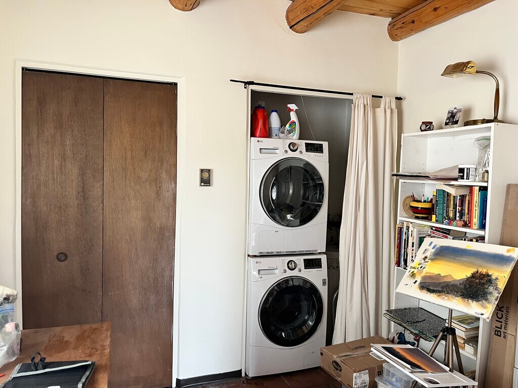 Welcome to your rental house on the gorgeous south side of Taos, NM! This charming property offers a fantastic blend of quiet comfort and convenience, making it an ideal choice for those who want to enjoy all that the south side has to offer. Walk to Taos Spa to enjoy a sweat, swim, steam or soak! This fully-furnished rental boasts a large bedroom, spacious living and dining area, an office off the living area with barn doors for privacy, a private outdoor space with exquisite sunset views and in-unit laundry! Don't miss out on this wonderful opportunity to rent in Taos. Schedule a showing today and make this property the place you can call home! **Kit Carson electric and internet are not included in monthly rental price.** Note on Pet Policy: No cats, as owner is extremely allergic. Thank you!