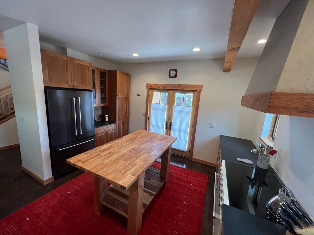Available MAY 1st, 2026. Custom built 3 bedroom / 2.5 bathroom home for rent. Being rented FULLY FURNISHED. Special features included AGA induction range/stove and All-Clad induction cookware, black granite counter tops in kitchen with cherry cabinetry, black walnut bar, vaulted ceilings with reclaimed wood interior, frameless glass showers, concrete floors on the main level and reclaimed hardwood flooring on the upper level, some 1920's refurbished lighting, 1890's interior door hardware, reclaimed wood exterior with copper exterior lighting, covered backyard patio with large trees, upper level loft with balcony with view of the Moab Rim. There is Mini-Split heating and cooling for each room, a 2 car garage, and is walking distance to the Mill Creek Trailhead and close to town! No smoking and no pets are allowed. This is a quiet neighborhood and please see the lease summary for details to the renting the home. 6 MONTH to 1 YEAR Lease. FULLY FURNISHED; Available MAY 1st, 2026. ONLY RENTING TO ONE FAMILY; No multi-family rental allowed. NO Smoking & NO Pets. If any terms within the lease are broken, the tenants forfeit their deposit and will have to leave immediately. Strict requirements are in place due to past experiences with prior tenants on another property. The rent does NOT include utilities.