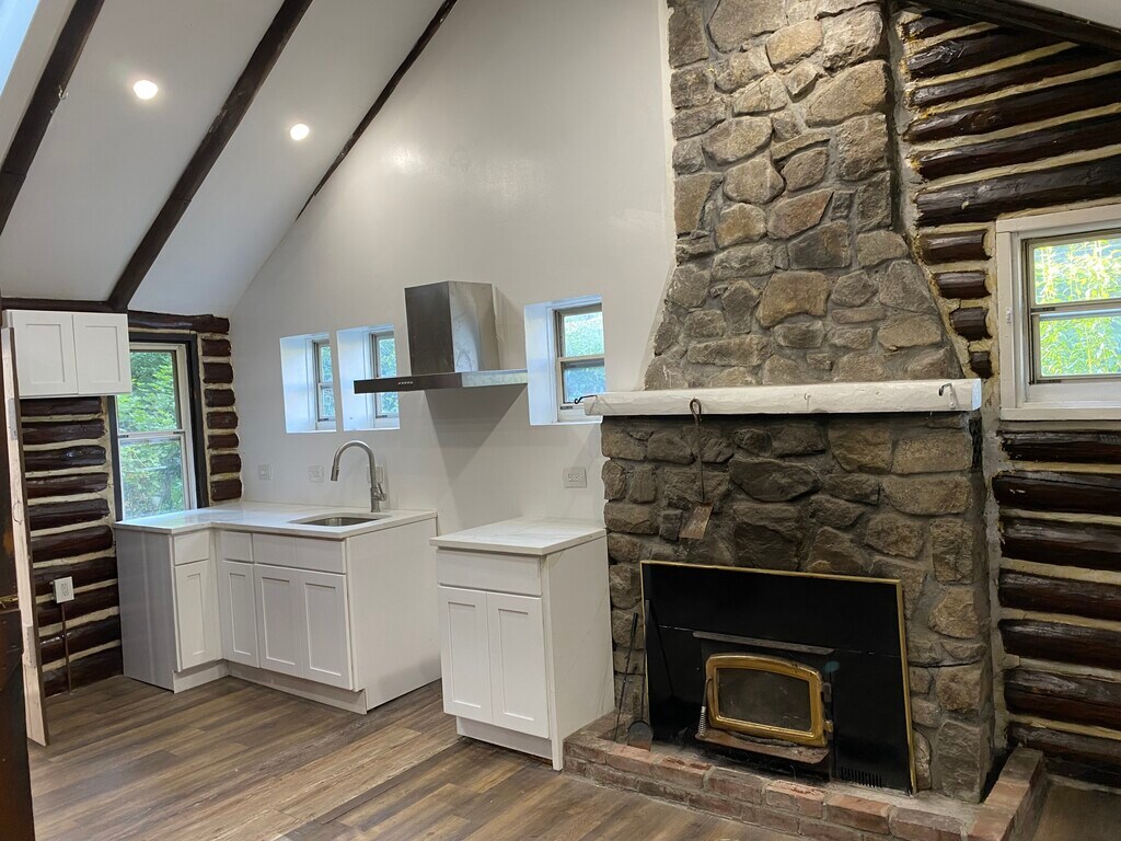 Very cozy log cabin updated kitchen with bathroom 3 minute walk to beach great location !