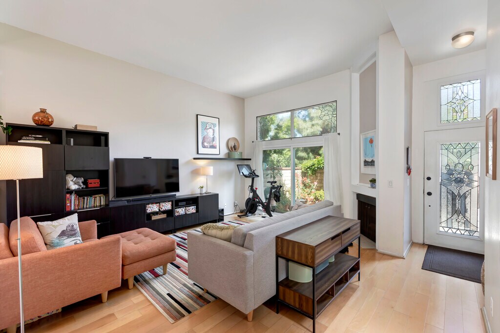 Welcome to this stunning beachside end-unit townhome, a rare find offering the privacy of a single-family home with a coveted front entrance and charming patio, perfect for relaxing or entertaining. Inside, soaring ceilings and gleaming hardwood floors set the tone in the sun-drenched living room, where a cozy gas fireplace and sliding doors create an effortless indoor-outdoor flow. The heart of the home is the beautifully remodeled gourmet kitchen, featuring a gorgeous backsplash, premium Thermador and LG stainless steel appliances, including a gas range, convection oven, and microwave, generous counter space, a peninsula with storage underneath, custom cabinetry, and a sun-kissed bay window. The open dining room flows seamlessly alongside, making it ideal for hosting. A stylish powder room and convenient laundry room with full-size LG side-by-side washer/dryer complete this level. Upstairs, retreat to the expansive primary suite featuring a balcony, an expansive walk-in closet, a large linen closet, and a spa-inspired remodeled bath. Two additional bright bedrooms, another beautifully skylit bathroom, and a linen closet round out the upper level. Below, the private 2-car garage with direct access delivers the full package, including built-in storage, cupboards, racks, and a dedicated 240V outlet for EV charging, a rare luxury on the Westside. Beyond your door, enjoy resort-style living with 3 pools and spas, a recreation room, and gated lush landscaped grounds, with HOA covering internet and basic cable. Situated in one of LA's most coveted coastal enclaves, Marina del Rey places you at the edge of the largest man-made small craft harbor in the US, with the sand, the sea, and the iconic Marvin Braude Bike Trail just moments away, and the waterfront parks of Burton Chace practically at the end of your street. World-class dining, boutique shopping, the vibrant energy of Silicon Beach including Venice, Santa Monica and Playa Vista, quick freeway access via the 90 and 405, LAX just 5 miles away, and Loyola Marymount University all within easy reach. Opportunities like this don't last. Schedule your private tour today and come experience the coastal lifestyle for yourself.