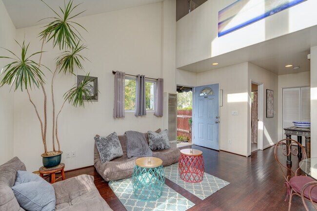 ¡A CUATRO CUADRAS DE LA PLAYA! UNA UBICACIÓN DE PLAYA DE VENICE PRESTIGIOSA.UN EDIFICIO MÁS NUEVO **AMPLIO YARDO PRIVADO** de unos 75 metros cuadrados para mudarse a TOWN HOME STYLE APT. Unidad de dos niveles, techo de 5 metros de altura, PISO DE MADERA, lavadora y secadora en el interior de la calle Santa Clara, a 4 cerraduras de la PLAYA. A 1/4 cuadra del moderno abbot Kinney blvd. restaurantes y galerías