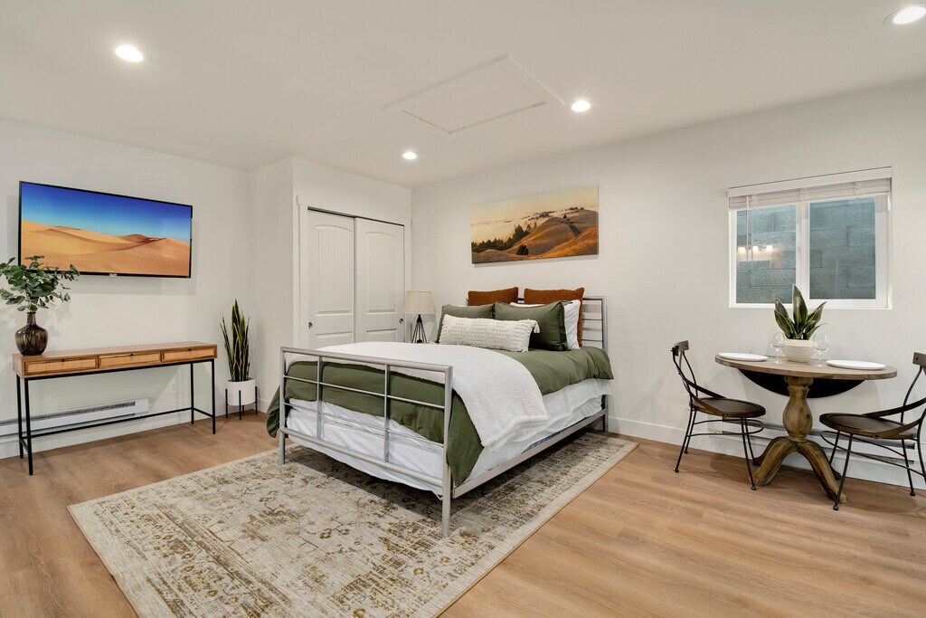 Acogedor estudio cerca del centro de Loveland CO. Totalmente amueblado. Construido en 2021. Cocina completa y electrodomésticos de acero inoxidable, cocina empotrada, baño con bañera/ducha, cama Queen, televisor grande con pantalla plana, lavandería, espacio de trabajo, estacionamiento disponible en el lugar, patio trasero privado cercado, con asientos al aire libre, fogata, parrilla, todos los servicios públicos incluidos más wifi, solo traiga su maleta y póngase cómodo, a solo 45 minutos del Parque Nacional de las Montañas Rocosas y del Parque Estes.
