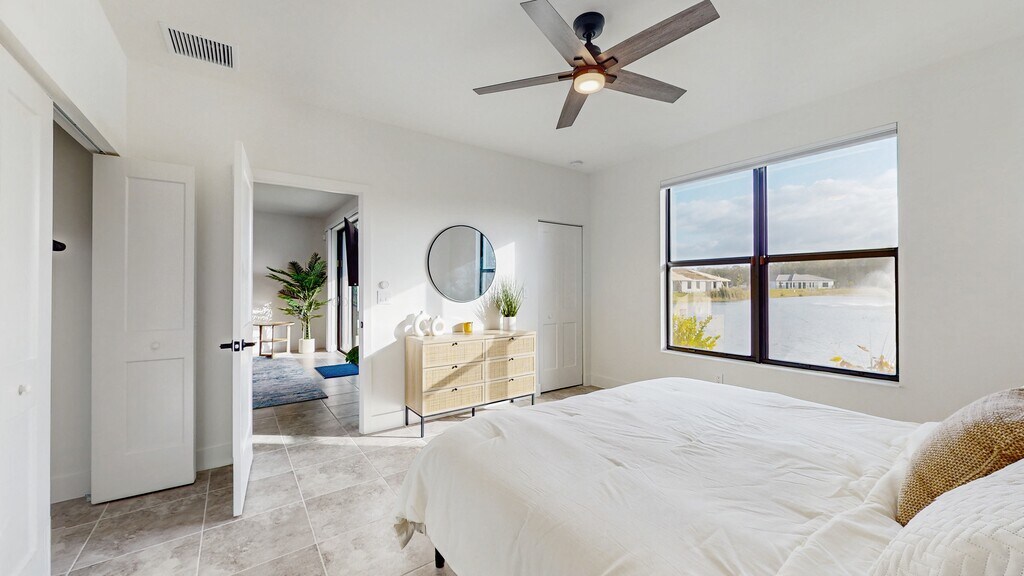 Experience this villa-style living in this brand-new, fully furnished, single-level 3-bedroom, 3-bathroom home offering 1,600 sq. ft. of fresh finishes. All bedrooms feature king-size beds for ultimate comfort. Enjoy stunning water views with a decorative fountain visible from the living and dining areas as well as the primary bedroom. This gated community includes fantastic amenities like a heated pool, spa, and gym, with all utilities included in the rent (cable, high-speed internet, water, heating, cooling, etc). This home features a designated workspace with rising desk and monitor, hurricane windows, and blinds throughout. Conveniently located just 5 miles from the RSW international airport, with easy access to I-75 and only 13 miles to Fort Myers Beach, 1 mile from Boston Red Sox spring training, 5 miles from Minnesota Twins spring training. This property is the perfect blend of luxury, convenience, and serenity.