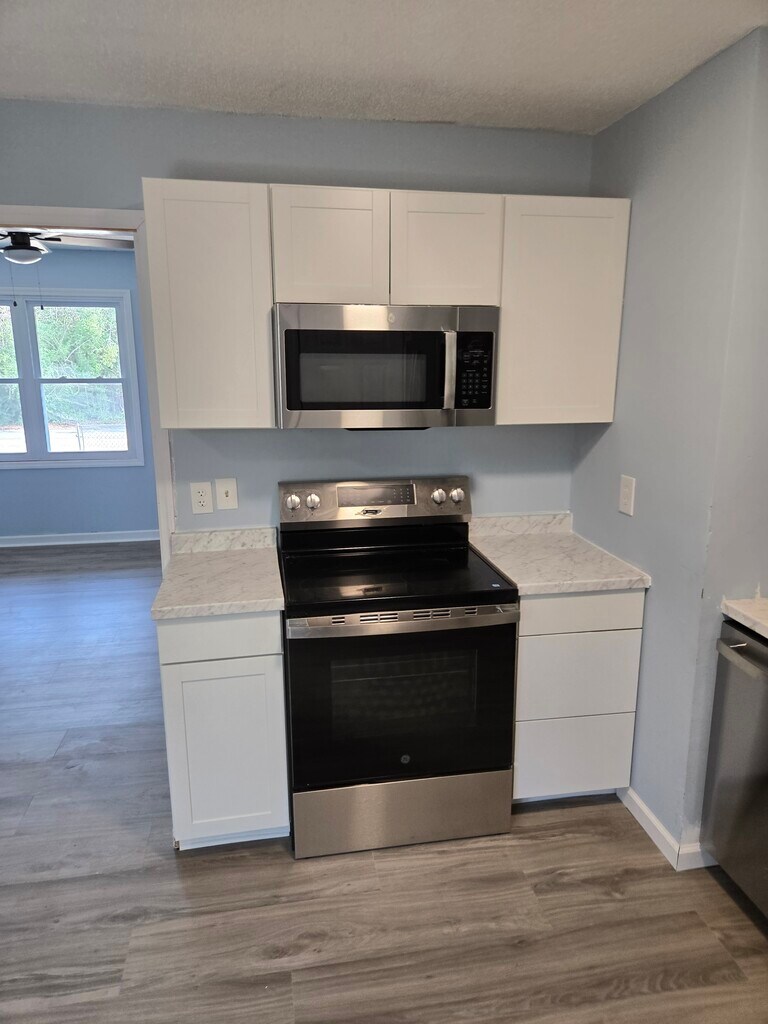 3 bed 1 bath home on quiet street. Updated with new ceiling fans, flooring, kitchen cabinets, brand new appliances, washer dryer in house. Freshly painted inside and out.