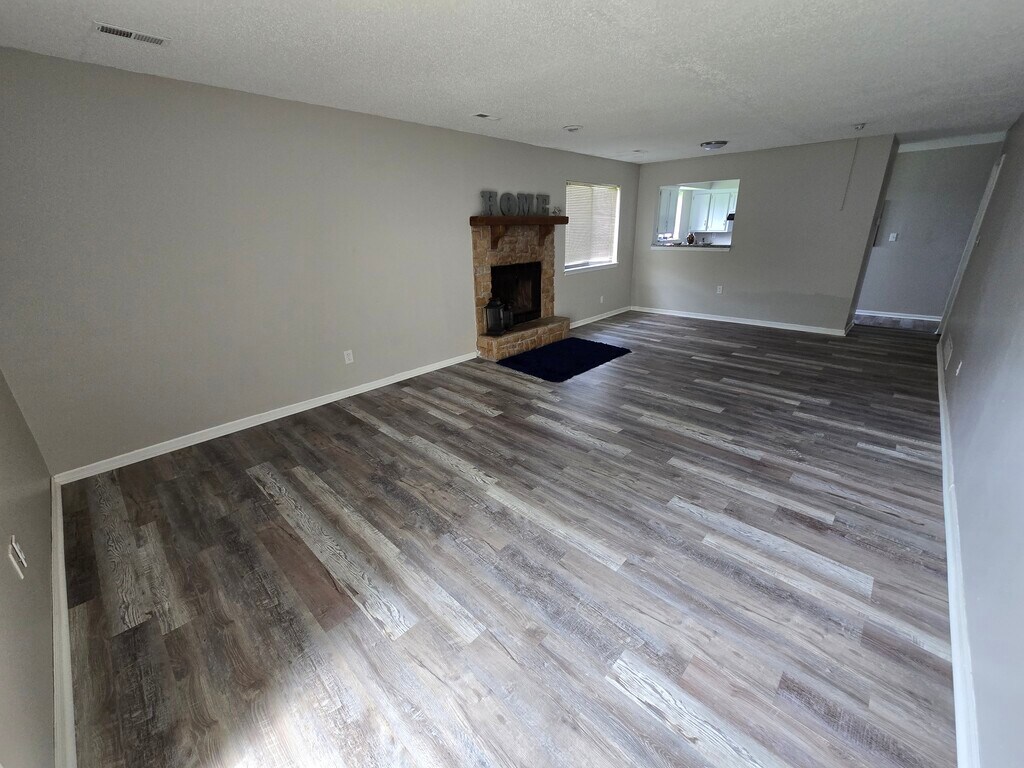 Prime Location at 119th and Ridgeview in Olathe! This spacious upper unit offers an open living and dining area with laminate & carpet flooring, a cozy stone-front fireplace, and extra storage off the back patio. The updated kitchen features sleek cabinets, granite countertops, and updated appliances. A convenient hall bathroom serves the guest and spare bedroom. The large primary suite has a full en-suite bathroom. Laundry room off the kitchen with both washer and dryer hookups. While pets are highly discouraged, they may be considered with an additional pet deposit and pet rent, if approved.