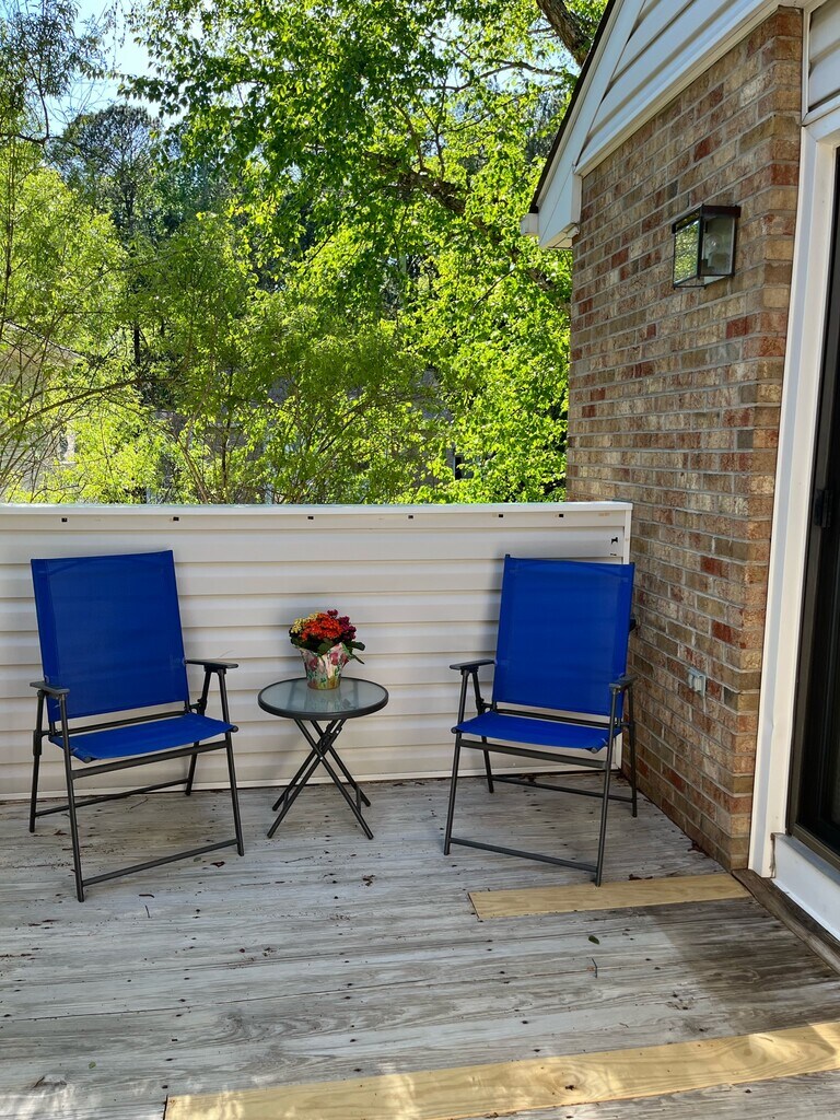 Right around the corner from La Farm and all that historic Cary Downtown has to offer. Oversized one bedroom upstairs unit; move in ready and beautifully updated. The updated kitchen opens to family room and dining room. Updated fixtures, flooring and lighting. Spacious closest in very large bedroom. Two vanities. Large sliding door exits from family room to patio. Extra storage off deck area. In unit washing and dryer. Ample outside parking available. Small pets considered with pet deposit. Nonsmoker. Move in date for January 1, 2026 with 6 month or 18 month lease. Security deposit equal to one month rent. Pets considered with pet deposit. Tenant pays all utilities.