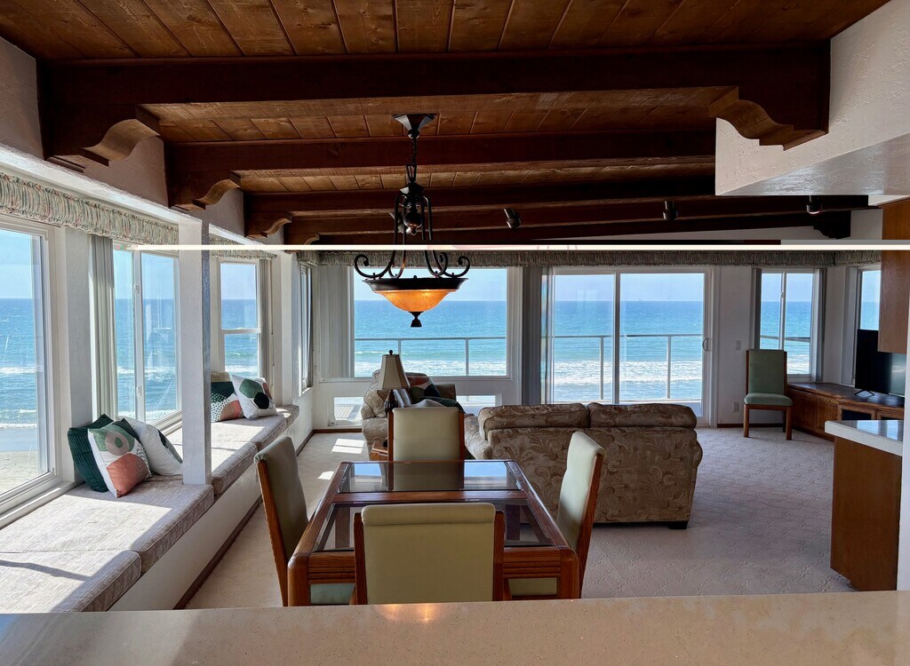 Quirky mid-century modern style meets comfy coastal vibe with VIEWS FOR MILES! This penthouse corner unit condo HAS IT ALL: THE PRACTICAL: --YOUR CHOICE: Fully furnished or Unfurnished --YOUR CHOICE: Fully equipped kitchen or provide own --In-unit washer and dryer, --Elevator --2 reserved garage parking spaces THE FUN: --Ocean views from every room --Wet bar with beverage fridge --Fireplace --Large ocean view deck APPLICANT REQUIREMENTS --Minimum 1 year verifiable rental history with no evictions or unlawful detainer actions. --Required proof of employment and income (pay stubs, tax returns, bank statements, etc.) --Gross monthly income equivalent to 3x monthly rent --Able to provide current Credit Report with minimum score of 710 Renter pays for all utilities. LEASE: 6 mos-1 year