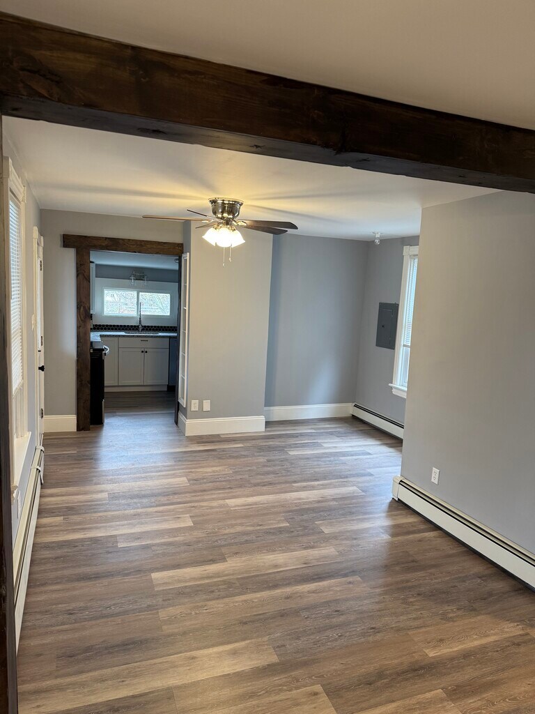 *ALL UTILITIES INCLUDED* Spacious Fully Renovated 2 bedroom 1.5 bath apartment. (2nd floor) Large sitting area balcony. 2 separate entrances. Large dining and living room. New high end stainless steel appliances in kitchen including fridge, stove, microwave, dishwasher, & laundry machines. New cabinets, countertops, new water resistant vinyl flooring in bathrooms, kitchen, laundry, bedrooms, and hallways. Freshly painted unit. Lots of storage space and closet space. Small backyard. Charming, quiet, spacious, apartment. Conveniently located on Main St, walking distance to pharmacy, pizza, movies, coffee and so much more. Small Pet Friendly. (Owners discretion) No smoking On Street parking Owner pays water, sewage, electric, natural gas (heat) and trash. Snow & Lawn Maintenance (provided). *TENANT SCREENING & CREDIT CHECK* (required) NO SMOKING OWNER PAYS UTILITIES