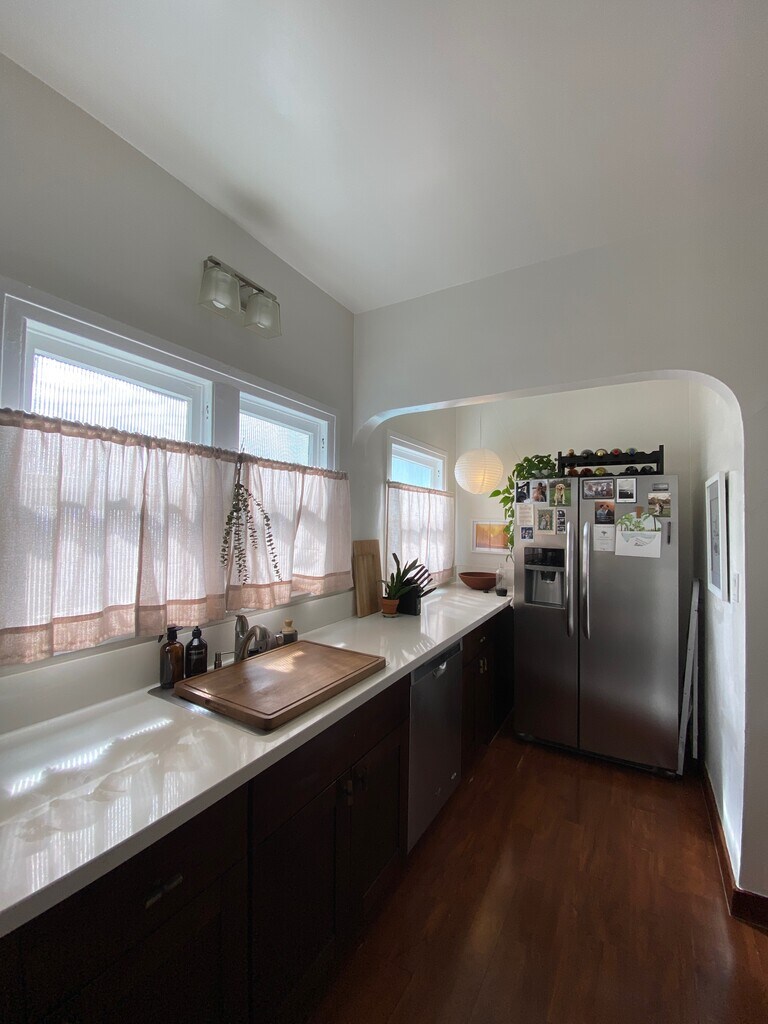 Private front door and back door entrances to your apartment. NO communal hallways, set up like a 4 unit San Francisco style Flat. Sunny and bright large 2 bedroom apartment on the TOP floor! 1400 Square Feet, Newly updated, Modern Amenities. Pet Friendly. This apartment embodies Santa Monica life at its best. The unit gets great natural light and faces the residential street. It is close to everything you need: grocery stores, sushi, bars, coffee shops, and banking are all within 1.5 blocks away. Walk score of 90 It has great access to the 10 and 405 freeways, within a mile, and is just a few blocks away from the light rail train. You can also bike to the beach within 10 minutes, but live away from the congestion. Washer/Dryer in unit one and super large carport that fits 2 large cars Great building with super nice tenants!!! Call for showings