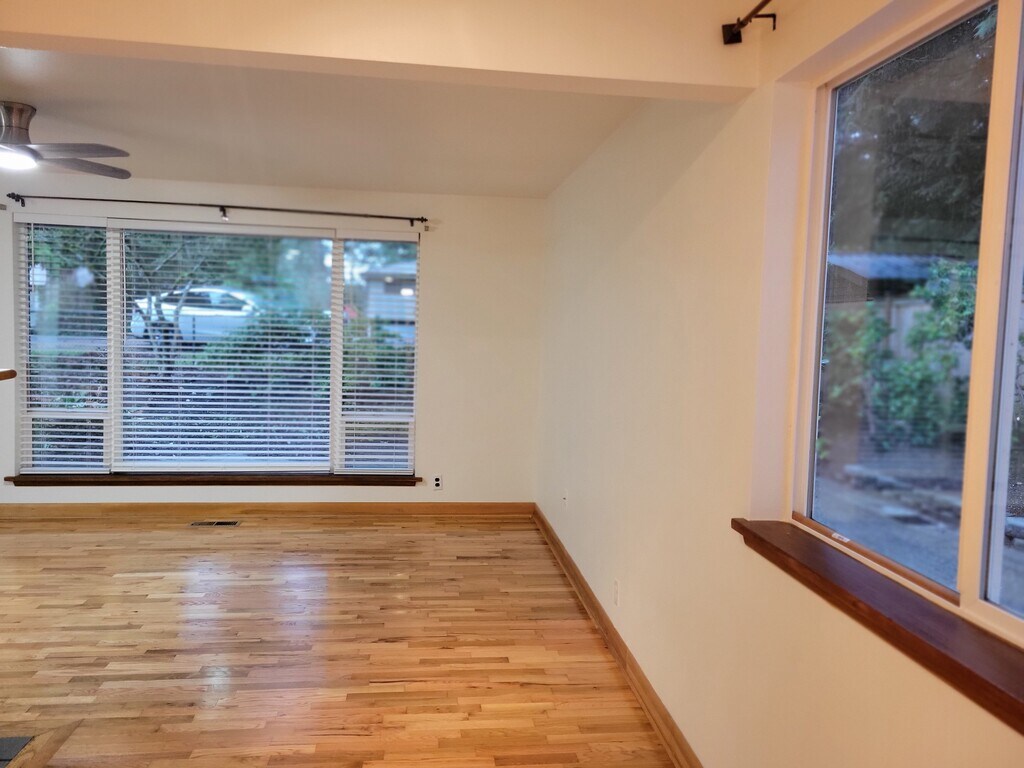 Discover this updated and comfortable single-level Olympic Hills home nestled in a garden retreat. The open floor plan features hardwood and LVP floors, tons of natural light, tiled kitchen and bath. Enjoy the convenient comforts of a dishwasher, washer, dryer, double paned windows, electric water heater and heat pump for year-round heating and cooling comfort. Relax outside on the patios front and back or enjoy the fenced backyard. Tandem off-street parking. Two bedrooms, full bath, family room, dining. 12 mo. lease minimum. Close to shops, restaurants, and great transportation options including Northgate and 145th Street light rail stations, and buses on 15th Ave NE, Lake City Way and more. Pet ok with approval, additional $25/mo. pet rent. Call/text to tour and to apply online. $60 non-ref. app fee/adult (18+). Req: 3:1 household income ratio. 680 min. credit score. 2 yrs good rental history. To rent: 1st mos. rent, $2,950 security deposit. Renters Insurance req. Pet ok with approval. $200 pet damage dep., $25/mo. per pet additional rental fee. No co-signers. No portable screenings. Tenant pays W/S/G and electricity utilities. Lawn and yard care provided. Poster and owner is a licensed real estate agent in WA state with Windermere Real Estate/Shoreline. Available now!