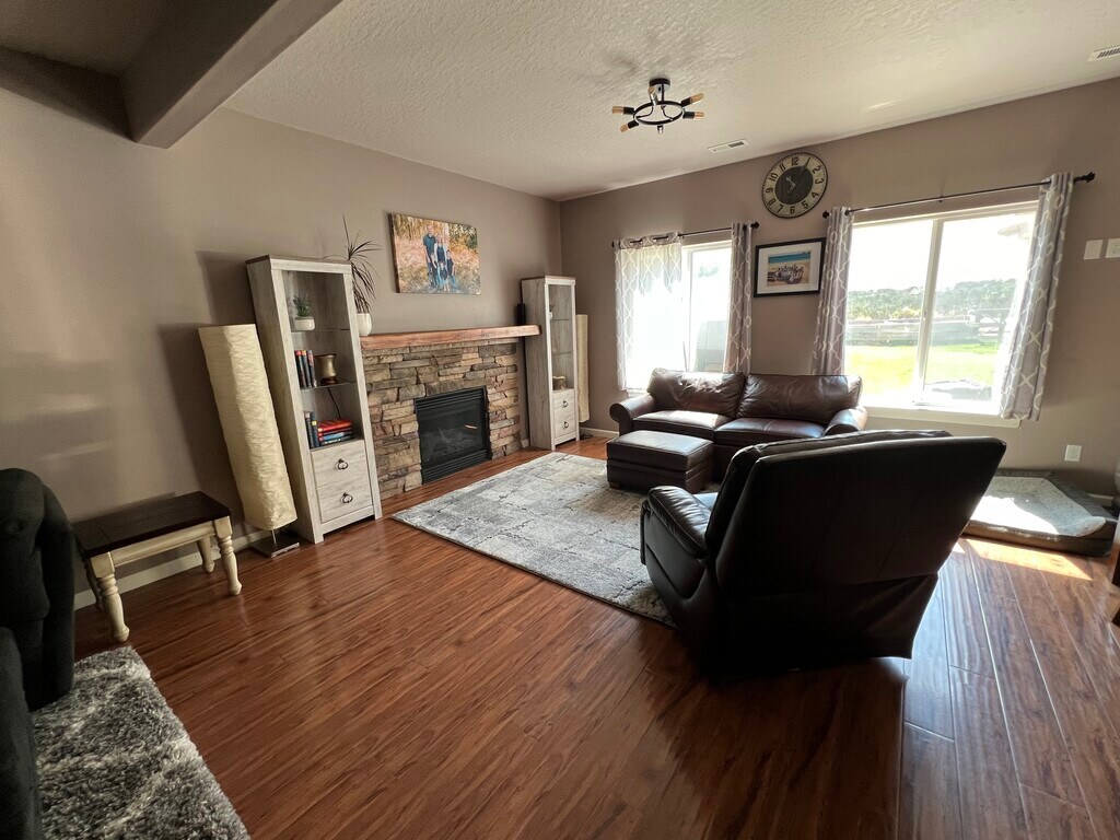 4 Bedroom 3 Bath home in the Whispering Hills neighborhood. Located on a quite cul-de-sac with a large yard. The master has an en suite bath and massive walk in closet with custom cabinets. Two additional bedrooms are upstairs, another full bath and a separate laundry room with sink. The main level features an open concept with large kitchen and living room. Kitchen features stainless steel appliances and a gas range. The main floor has a full bathroom and another large bedroom or office and a gas fireplace. Floors are all hardwood or tile for easy cleaning. The covered patio leads to a large flat yard with garden boxes and a utility shed. Available November, 2025. $2000 security deposit due at lease signing and first months rent upon move in. Pets accepted with pet rent and deposit. Water and sewer included in rent.