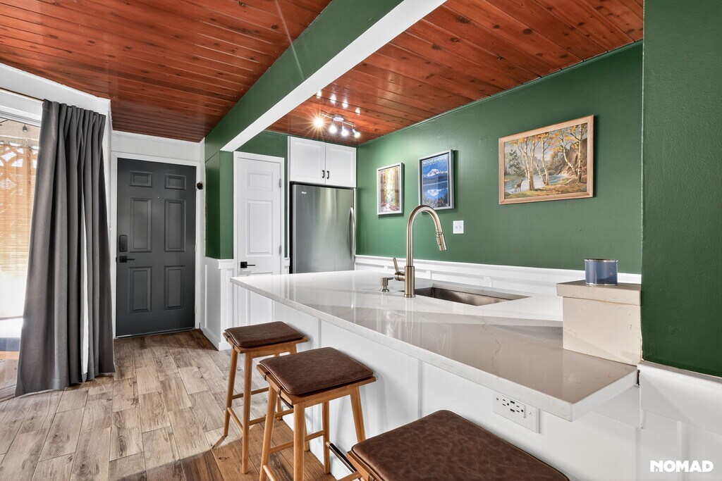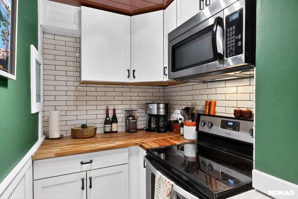 Enjoy this full two bedroom, one bathroom property with ideal location in the heart of the Cheesman/ Cap Hill neighborhoods. One bedroom has a king size bed, the other is set up for an office to work from home including a desk and futon that is set up as a couch but can be converted to a second bed if preferred. There are laundry facilities in the building, which also has an elevator and a covered parking space included.