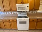 Three bedroom,. two bath home for rent. Enter to the home with a large eat-in kitchen overlooking the living room. Kitchen with tile counter tops, cook-top stove, Laundry room with washer and dryer included. Primary bedroom with en-suite bath with soaking tub, separate toilet room. Other bedrooms are split from the primary. Laundry room is off the entry with access to the two-car garage. Garage with plenty of storage cabinets, workbench and utility sink. French door access to the covered patio. Large fenced back yard.