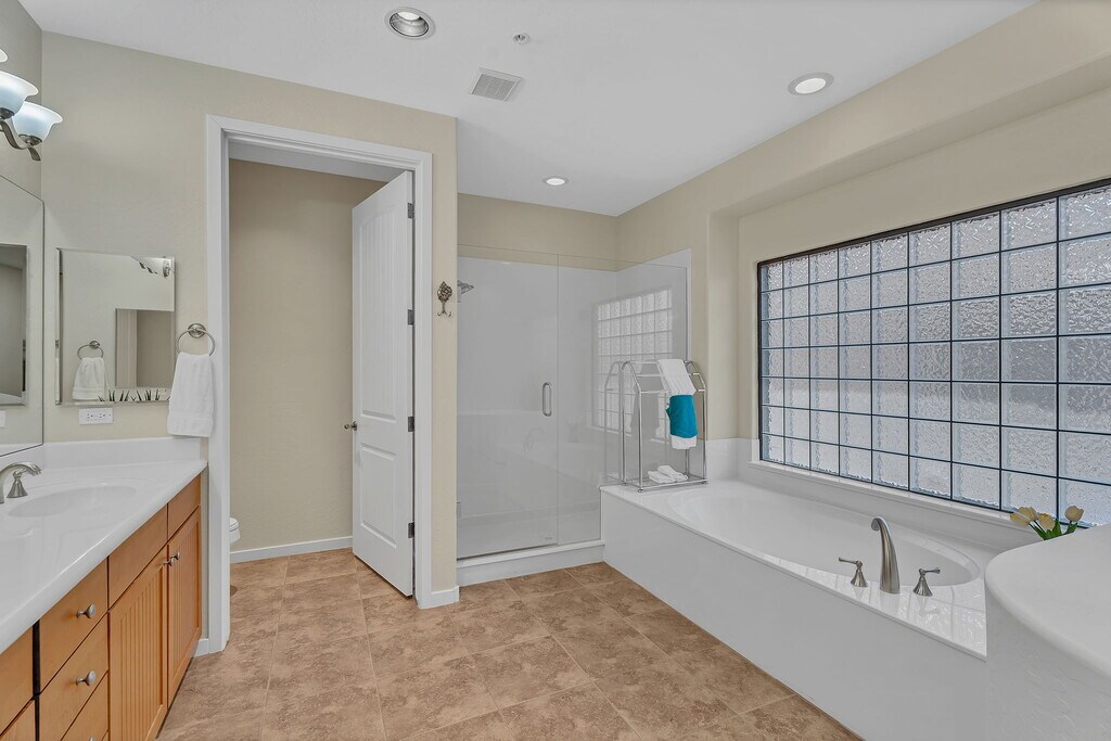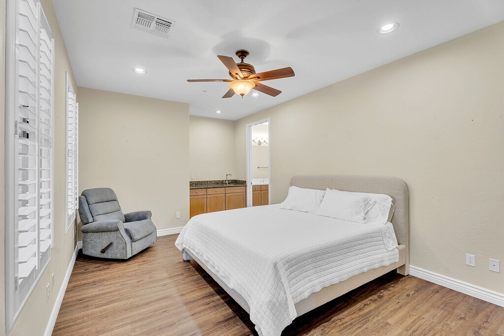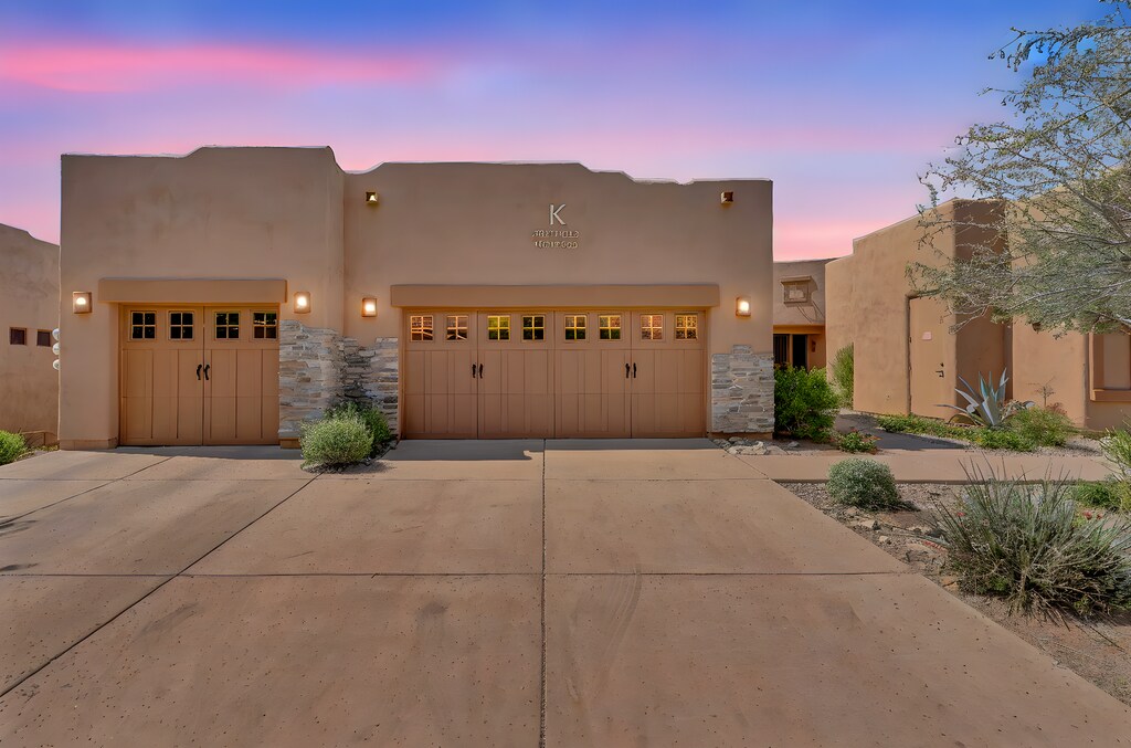 Situated on a hillside lot, this well-maintained Scottsdale townhome offers great curb appeal with stone accents and a 2-car garage. Inside, enjoy new flooring, plantation shutters throughout, a bright dining area with recessed lighting, balcony access, and a cozy fireplace. The kitchen features granite counters, crown-molded cabinetry, built-in appliances, and a breakfast bar. The split floor plan offers privacy, with the primary suite featuring a private bath with dual sinks and a separate soaking tub, and a second bedroom with its own en suite bathroom. Relax on the balcony with beautiful sunset views. Residents have access to excellent community amenities. Move-in ready and perfectly located in sunny Scottsdale!