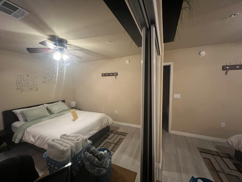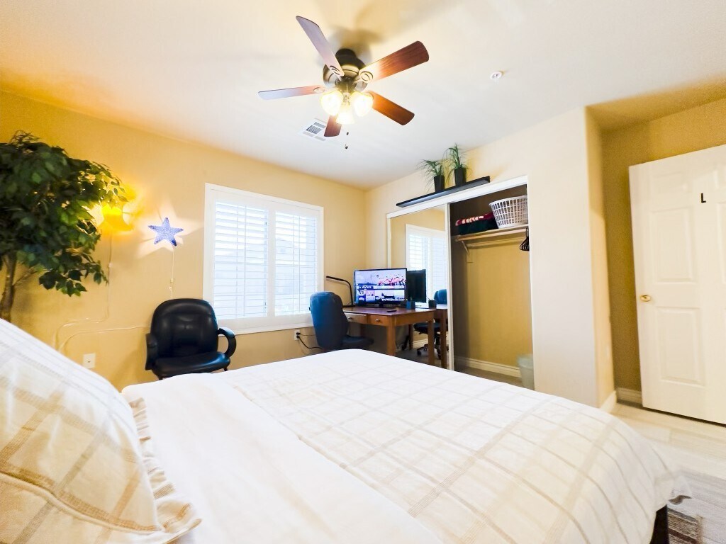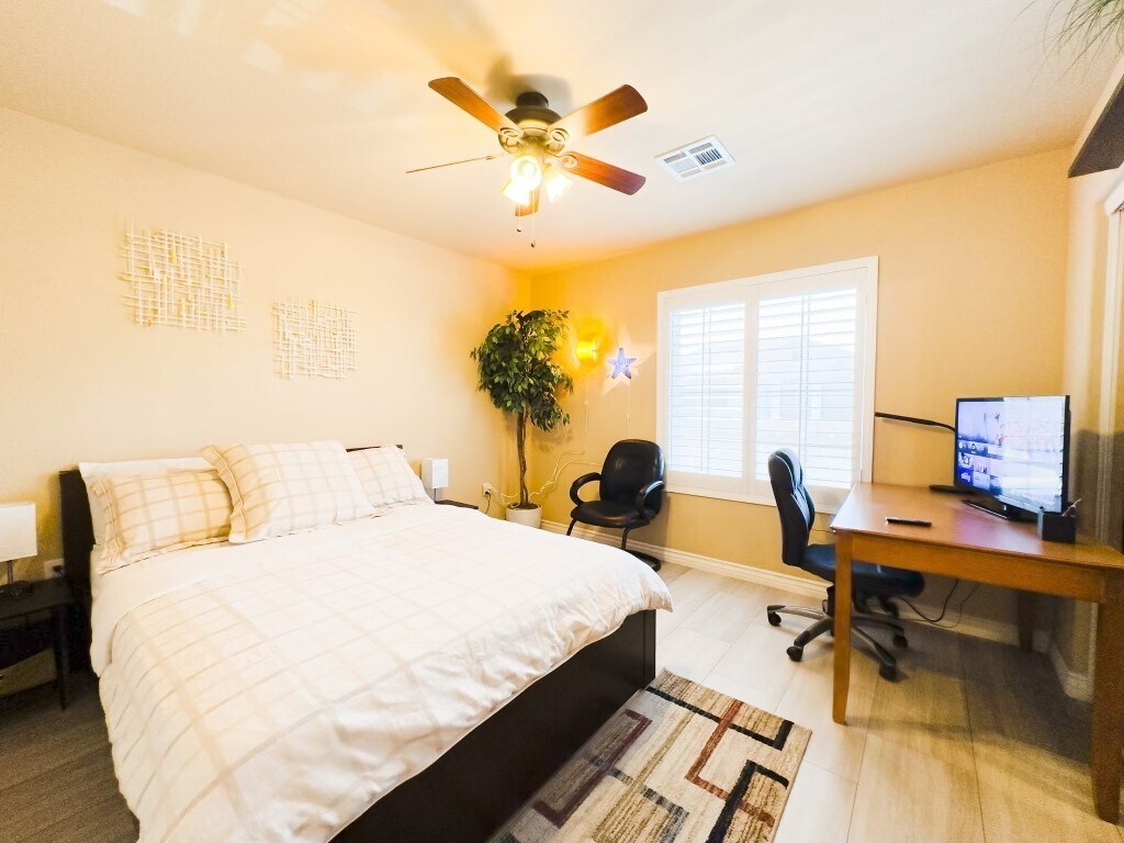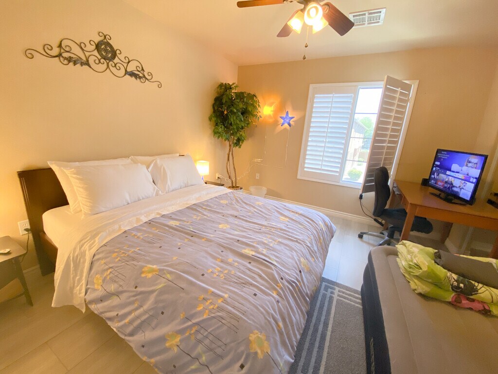 The home is located in a quiet gated community with easy access to major highways, shopping, and medical centers. The upstairs guest area provides privacy with a separate entrance, while shared spaces are well organized and thoughtfully arranged for longer stays. Its a comfortable and convenient environment for professionals seeking a peaceful place to live and work.