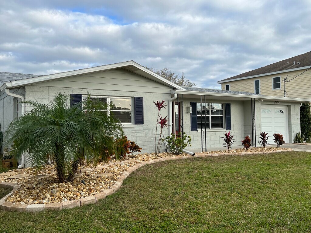 Beautifully remodeled single family home on a canal in Sea Ranch. Kitchen has ample cabinets, quartz countertops with peninsula. Living room with room for sofa & loveseat and large screen TV. 3 bedrooms including one with a 1/2 bath, one with room for a TV & sitting area. Screened-in lanai porch. Backyard area. Garage for storage or parking. Tenant must mow the lawn & weed, mower provided. Application with credit report required, minimum credit score of 650 is required.
