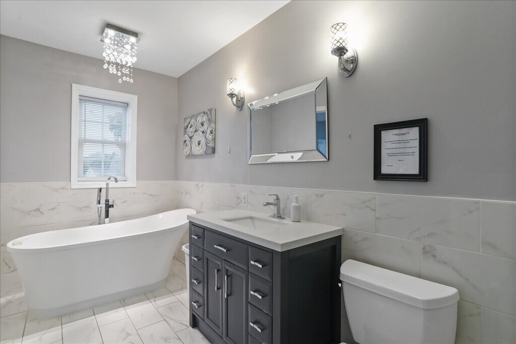 Welcome to this beautiful home in the Orchard Hills neighborhood on the North End of Hagerstown. Just outside of city limits, the home sits on .4 acres and boasts 5 bedrooms, 3 full bathrooms, and 1 half bath with a shower. Plenty of space with multiple possibilities! On the main level you'll find a beautifully updated kitchen with stainless steel appliances and pristine countertops. Connecting to the cozy living room with a beautiful window and plenty of natural light, you'll find a gorgeous primary suite equipped with a walk-in shower, soaking tub, and walk-in closet. Downstairs you'll find the fully finished basement with a 2nd kitchen, bedroom with egress, office space (potential 6th bedroom), laundry, and plenty of space for 2nd living room or play area. Multiple upgrades and a beautiful neighborhood make this house the perfect home. Schedule your showing today, and see all of the possibilities with this beautiful property! Rent includes water, sewer, trash, and lawn maintenance. Tenants pay for electric and snow removal.