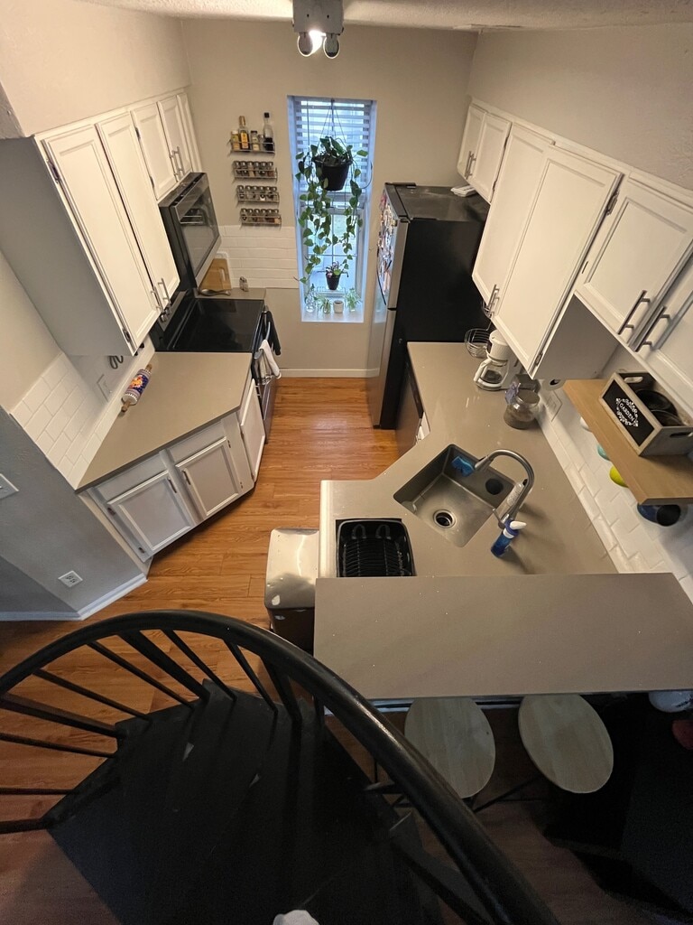 Newly renovated top-floor condo with incredible natural light and soaring 20 ft ceilings! This 3rd-floor unit has an open, airy layout with a beautiful spiral staircase leading to a large loft and bonus storage area. The main level features updated laminate flooring throughout (with new carpet in the bedroom) and fresh, modern paint and ceilings throughout the entire space. The kitchen has been fully remodeled with quartz countertops, all-new stainless steel appliances, modern cabinetry, and upgraded electrical throughout the unit. Enjoy a working wood-burning fireplace, two private patio areas, and oversized windows that fill the condo with sunlight all day. The home also includes newly installed central A/C and heating, an in-unit washer and dryer, and a new water heater within the last year. The primary bedroom is spacious with an open closet, and there is an additional partly enclosed room—perfect for a dedicated home office or dining. Upstairs, the loft offers flexible living space and a large storage area. Trash and water are included in the rent; gas and electric are on tenant. This unit includes a dedicated covered parking car port space plus two guest parking passes—a huge perk compared to other rentals in the area. The community is well maintained with professional landscaping, snow removal, trash service, doggy stations, and excellent walkability. Residents enjoy a beautiful pool and a hot tub that stays open year-round. Up to 2 pets are welcome with an additional pet deposit, no monthly pet rent required. Located right off Parker Rd and 225, this condo offers quick highway access and is ideally positioned between Cherry Creek State Park and Meadow Hills Golf Course—perfect for outdoor lovers. There is also an RTD station with parking just 5 minutes down Parker Rd, making it extremely convenient to reach the airport or downtown.