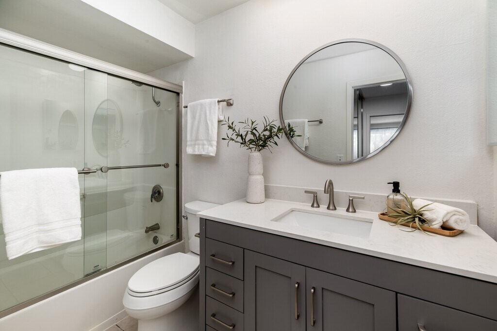 Freshly painted 1 bedroom 1 bath condo on the ground level of sought after complex (Del Mar Bluffs) in Del Mar. 5 minutes drive to the beach and shopping/restaurants at One Paseo and Del Mar Highlands. Brand new flooring in the unit along with updated kitchen and bathroom. Pictures show staged furniture but it will be empty at time of rental. Shared building laundry room and swimming pool. One detached garage and assigned parking space. Lease for 12 months minimum. Market rents for the building are at $2,995 as compared to Zestimate. No smoking in the property or around the complex. Small dogs or cats are allowed. Common area swimming pool and laundry room (pay by tap). Tenant to pay SDGE and WIFI. Owner pays for water, sewer and trash. HOA run building so rules will apply (copy of rules provided once lease is signed). Garage is detached and there is also a dedicated parking space with this unit.