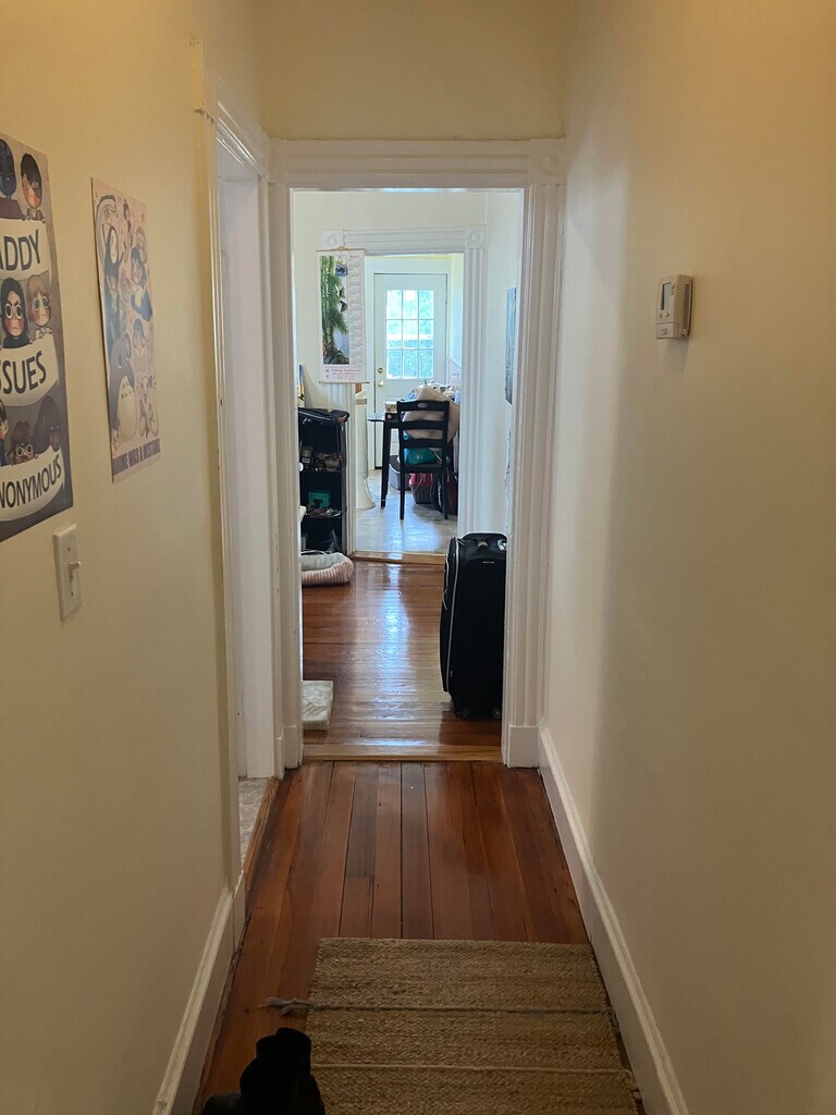 Adorable top floor 1 bedroom 1 bath with heat and hot water included. This unit has a shard deck space of the spacious eat in kitchen. The apartment has hardwood floors throughout as and vinyl tile in the kitchen.