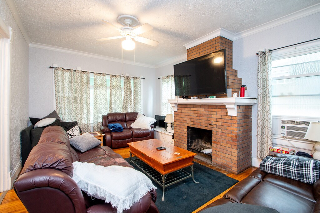 This Large Victorian house is located on Barker Street close to Bradley University. It's a very short walk to campus. The first floor has a lot of hardwood flooring; other floors have newer carpeting and vinyl flooring. The first-floor common areas are newly painted, one room with a fireplace and the other with a cool bar great for entertaining friends. Ceiling fans are on the first floor as well as in most bedrooms. There is a big first floor kitchen with a gas stove and large refrigerator and a dishwasher. A much-enjoyed feature of this house is the spacious front porch, great for studying on a sunny day or cool evening. The house has newer windows. A plus for this house is it has no basement bedrooms but does have a laundry room with 2 washers and two dryers (free machines), and lots of storage. There are 2 garages and lots of parking for tenants. The attic area has lots of woodwork and is architecturally cool. The house has been inspected by licensed professionals and is safe with smoke and CO2 detectors on all floors plus updated electrical services with breakers and no fuses. 1403 / 1405 Barker is a nice big house, very close to Bradley University that has been well maintained over the years.