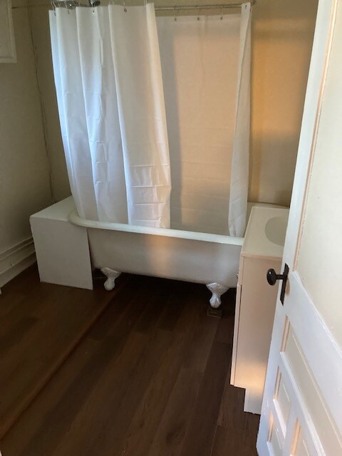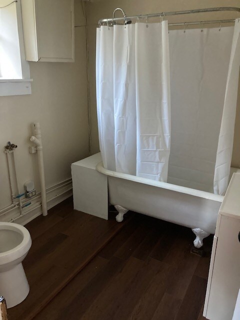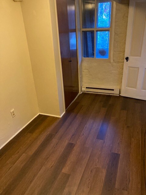 This is a solo person studio apartment which includes a small bedroom. It offers plenty of storage space, connections for apt size washer and electric dryer, on street parking, private porch with yard, located at street level (Pets are not allowed). This is a non-smoking unit which includes water. Tenant pays all electric, garbage, and security. Please email me with any additional questions.