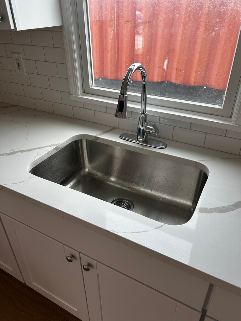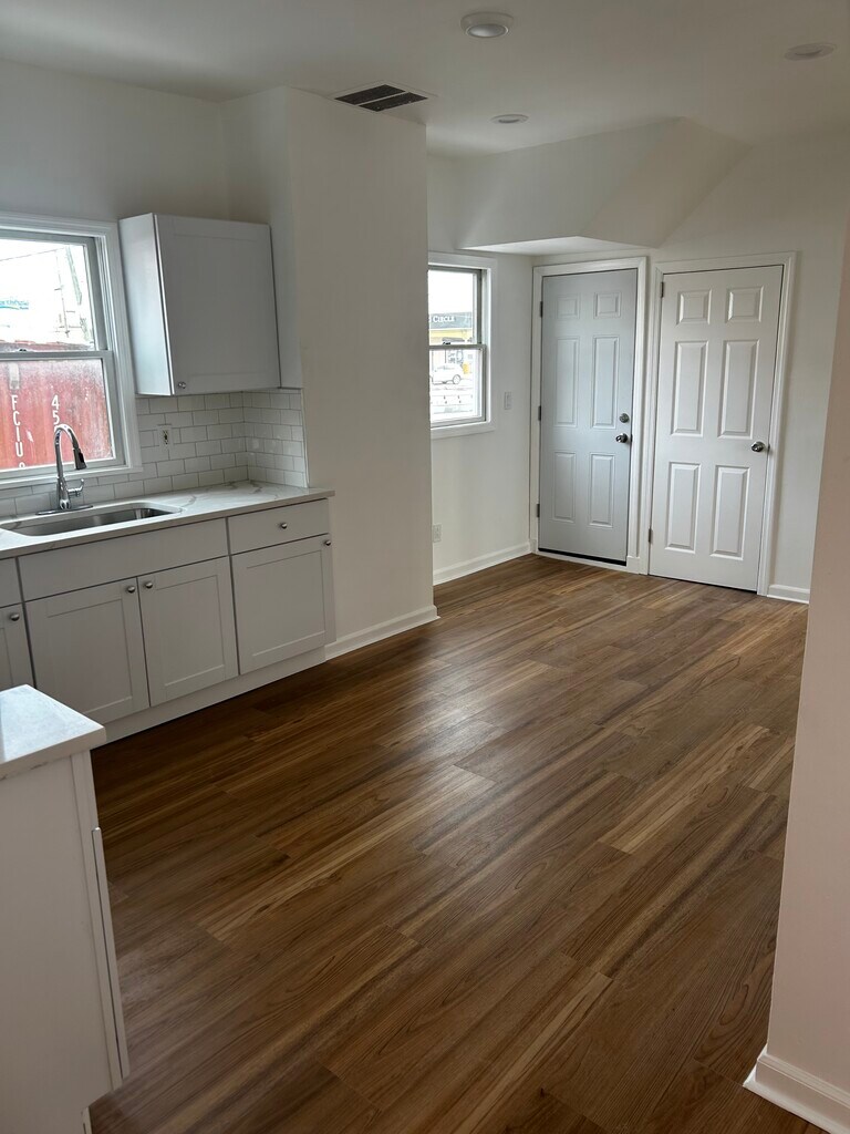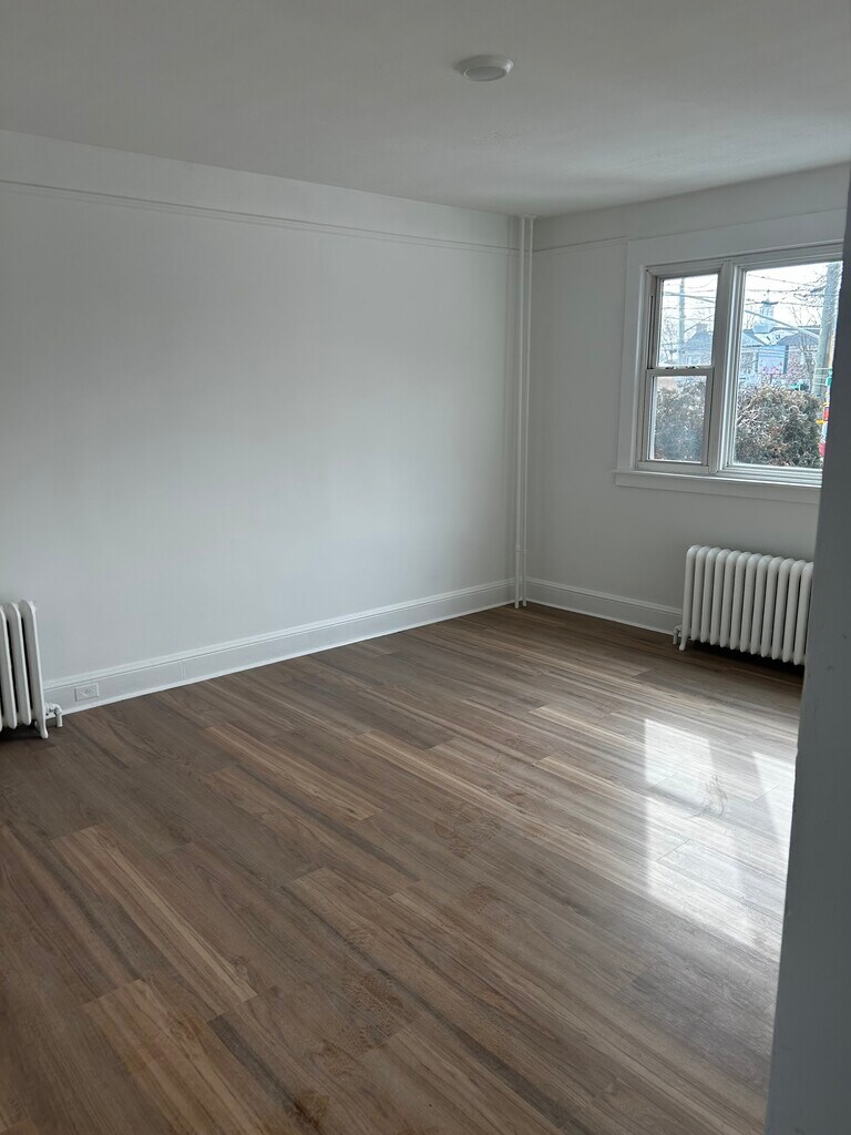 Large one bedroom apartment. All new. One bedroom with walk in closet, tiled full bath, new kitchen with quartz countertops, walk in pantry, plenty of sunlight. High hat lighting, new flooring, refrigerator, stove, and range hood. Laundry and bus across the street. Corner property includes one spot for parking.