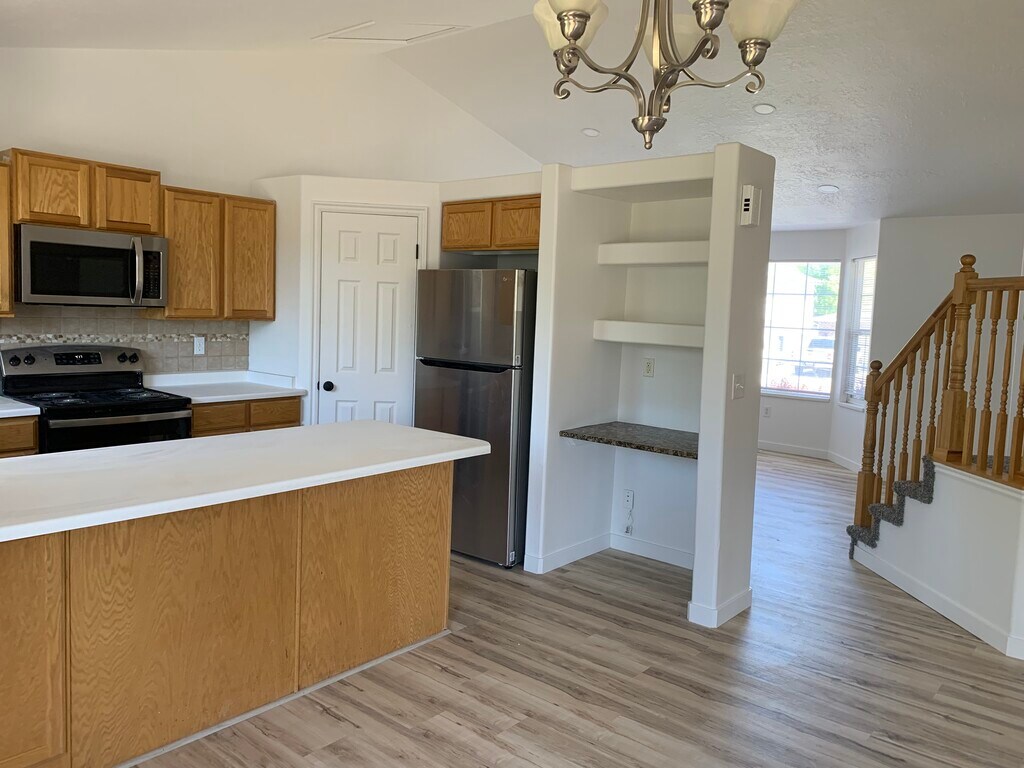 5-Bedroom Home for Rent in Layton, Utah Hey there! Check out this awesome newly remodeled home in a great neighborhood in Layton. With over 2,000 sq ft of space, this place now has 5 bedrooms and 3.5 baths thanks to a freshly finished basement. Perfect for a big family or anyone who loves having extra room! You’ll love the new vinyl flooring throughout the house and the brand-new stainless steel appliances in the kitchen – fridge, microwave, stove, and dishwasher. Everything’s been updated and looks fantastic. This home also has a two-car garage, a big lot for outdoor fun, and great neighbors. Approved pets are welcome for an additional monthly fee. It’s super close to Hill Air force Base, making it really convenient. Almost everything inside is new and ready for you to move in. Don’t miss out – contact us today to come see your new home in Layton!