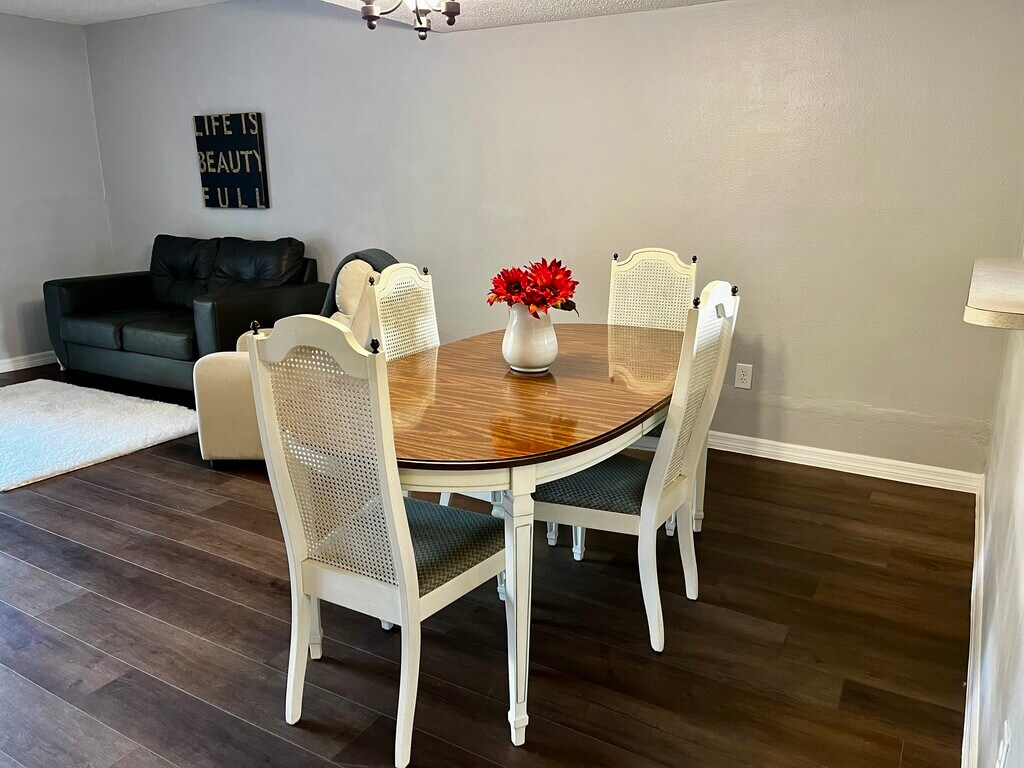 This 2-bedroom, 1.5-bathroom property at 144 Douglas Rd W offers 1,080 square feet of living space. This unit is a corner unit, with an expanse of trees to the north of the property. Two parking spaces directly in front of the unit give tenant quick access to front door. The living room provides ample room for relaxation and opens up to a generous fenced in back yard with a covered deck with seating.This unit is freshly painted and the lower unit is fully furnished. The kitchen is equipped with essential amenities. The full bathroom upstairs includes a tub/shower combination, while the half bath downstairs adds extra functionality. Each bedroom is designed for comfort and includes storage space. The back bedroom has a large covered deck to sit and relax and enjoy the trees to the north. Wi-Fi is available, making it suitable for remote work or leisure. Close proximity to Tampa International Airport, plenty of restaurants and shopping, and beaches. The rental price is competitive for the area, providing value for the amenities offered.
