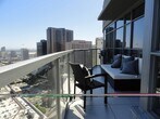 270 degrees of floor to ceiling windowed penthouse fully furnished. Complete privacy and the ultimate quiet comfort unit in the entire complex. Breathtaking views of Coronado bridge, Balboa park, and downtown San Diego. Premier unit with chef's kitchen with wine bar. Rap around decks with patio furniture and barbecue. Three bedrooms and three full bathrooms. Enjoy the prestige of peace and comfort and secured two parking stalls.