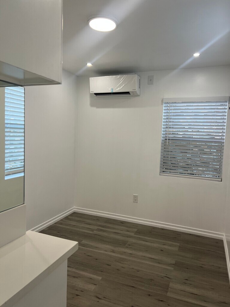 The apartment is next to the main house It’s brand new place everything is electric including Refrigerator,cooktop, microwave ceilings fan,air conditioner 1 bedroom, 1 batroom, kitchen living room 1 parking space outside patio including water Not included electric, tv cable, internet is Not included it’s your responsibility to pay no pets allowed no party’s, not smoking are not allowed inside the property. It’s available to move in
