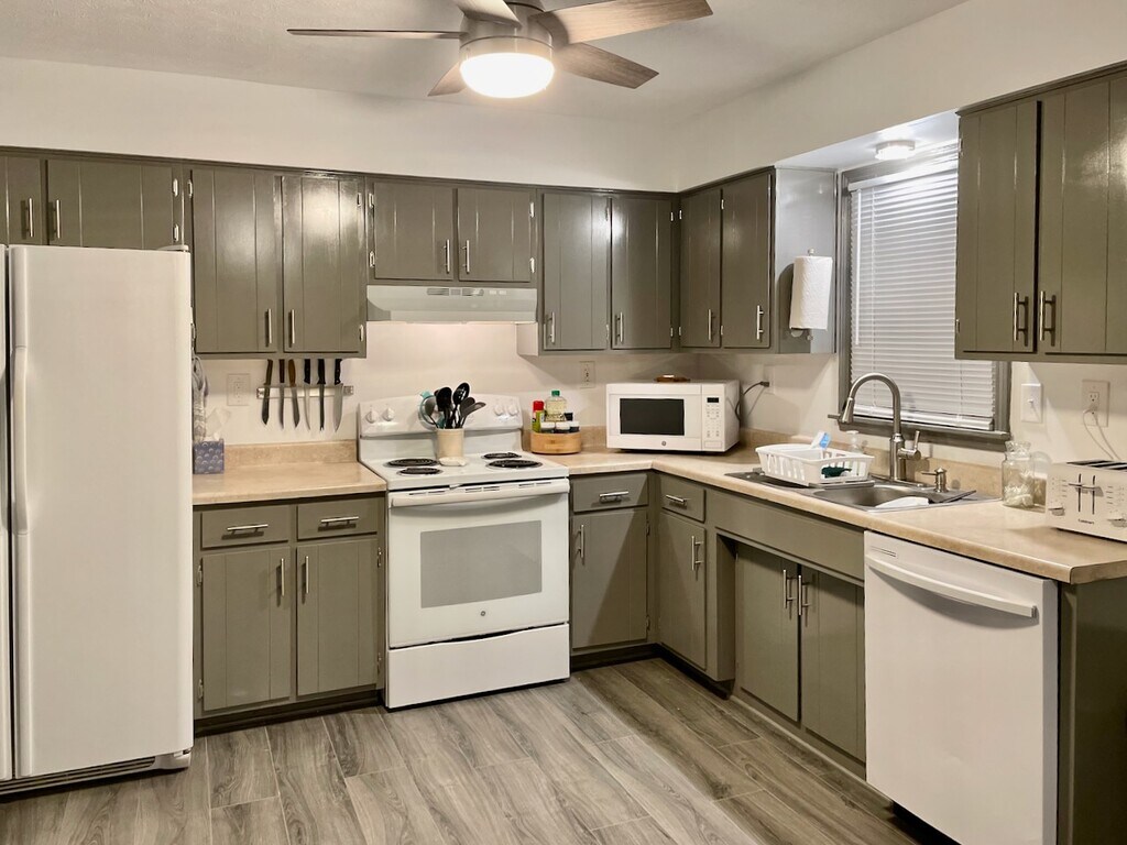 Suitcase ready! Everything you need to set up housekeeping for anyone who needs a minimum of fuss for a 1 to 6 month stay. All appliances, utensils, linens and starter supplies are on-site ready to use. High speed wifi is included, as well as all of the other more mundane utilities. New fence in back yard will secure most dogs. Sleeps up to 5. Pet and cleaning fees extra. Truly effortless renting for couples and small families.