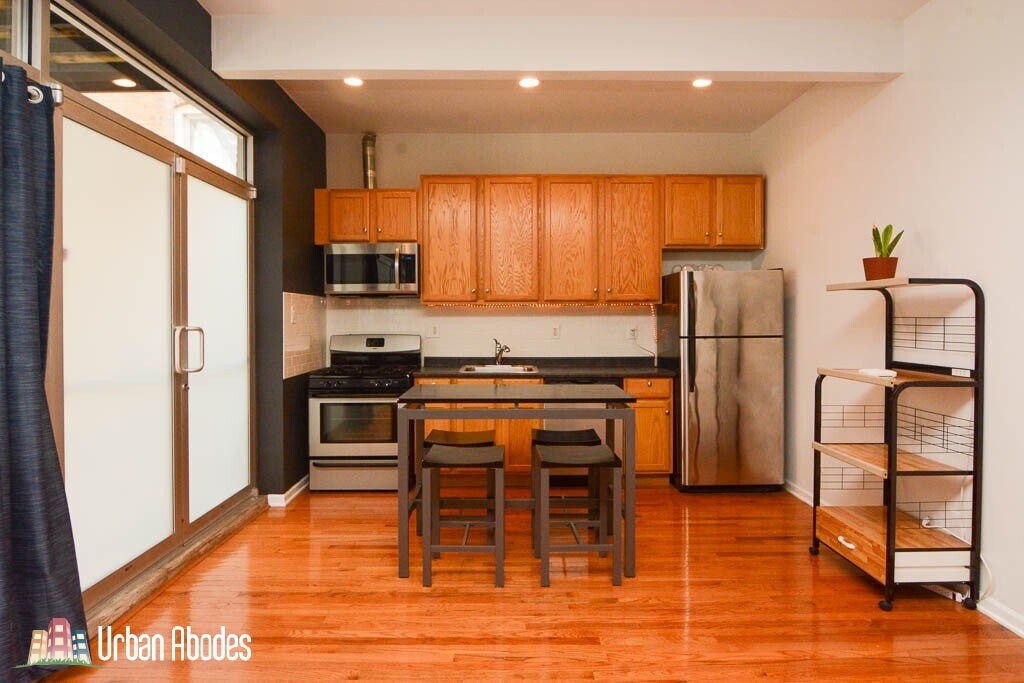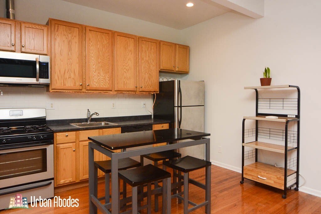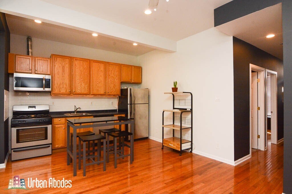 1450 W. Blackhawk Blackhawk + Cleaver Wicker Park $1495 per Month Available: 11/15/2024 Wicker Park gut rehabbed one bedroom! Central air, hardwood floors, newer kitchen, dishwasher, gas oven/range, fridge, microwave, large bedroom, good closet space, in-unit laundry, updated ceramic tiled bath, outdoor deck, small pets considered, short walk to Wicker Park Blue Line, cafes, shops and nightlife! Heat Included: No Air Conditioning: Yes Dishwasher: Yes Laundry: In Unit Flooring: Hardwood Parking: Street Pets: Cats and Dogs OK Fireplace: No Deck: Yes Square Feet: 700 Apartment ID: 7644 This rental is located in the heart of Wicker Park and is within walking distance to everything that is amazing about Wicker Park: public transportation, great restaurants, bars, clubs, coffee shops, boutiques, fantastic shopping, parks and so much more. Urban Abodes Equal Housing Opportunity