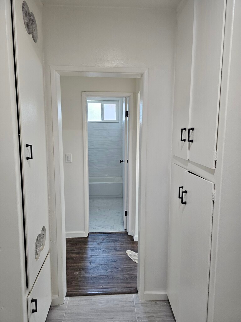 2 bedroom 1 bath unit Parking for 1 car under a carport. Completely remodeled unit new kitchen, new floors, new bathroom, ceiling fans, laundry hook-ups, new floors. One of three houses on the lot.