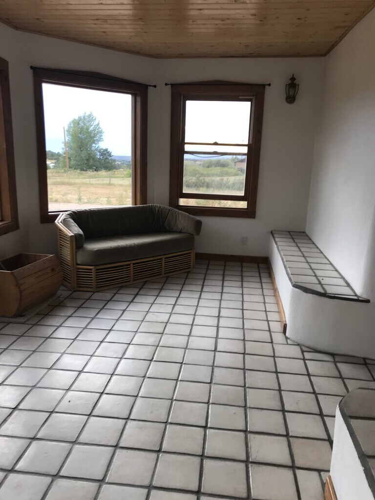Propiedad para alquilar en Truchas, Nuevo México. "La Casita" es una cabaña de adobe que ofrece un solárium orientado hacia el sur con impresionantes vistas y hermosos atardeceres. La cabaña está parcialmente amueblada e incluye un dormitorio, una cocina completa y un baño completo con lavadora y secadora. La sala de estar está realzada con una chimenea que brinda un ambiente cálido y acogedor. Esta propiedad de alquiler es adecuada para una persona o para una pareja.