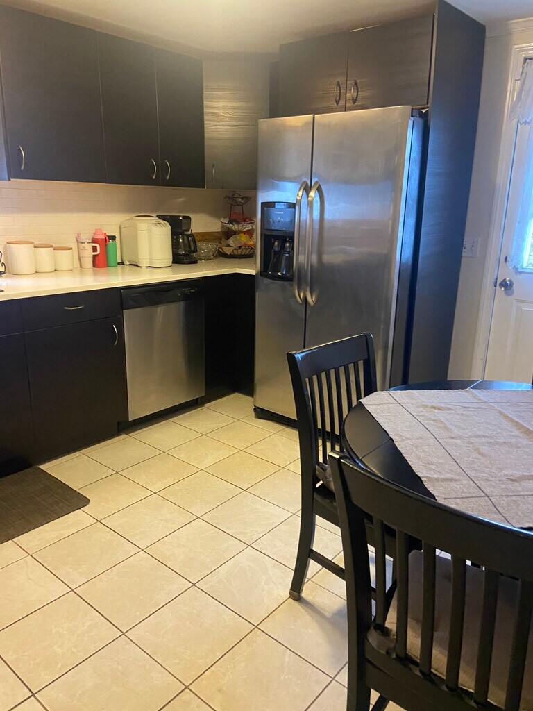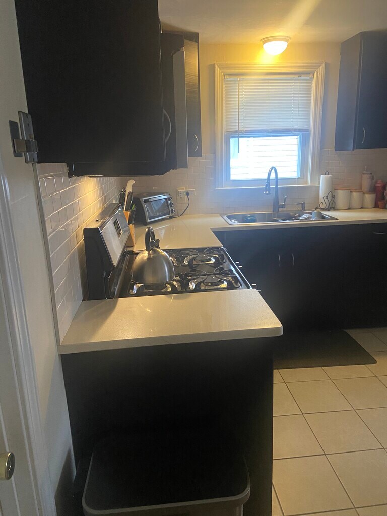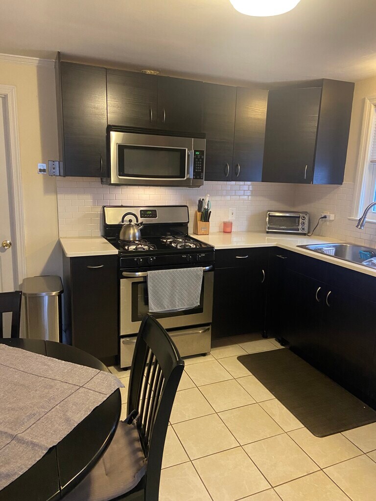 Freshly painted 3 bed 1 bath second floor apartment on quiet dead end street. Very easy commute to the city and easy access to highways. 200ft from bus stop. Updated kitchen with stone countertops, plenty of cabinets, gas stove and stainless steel appliances. Deck overlooking backyard. Off street parking and plenty of street parking too.