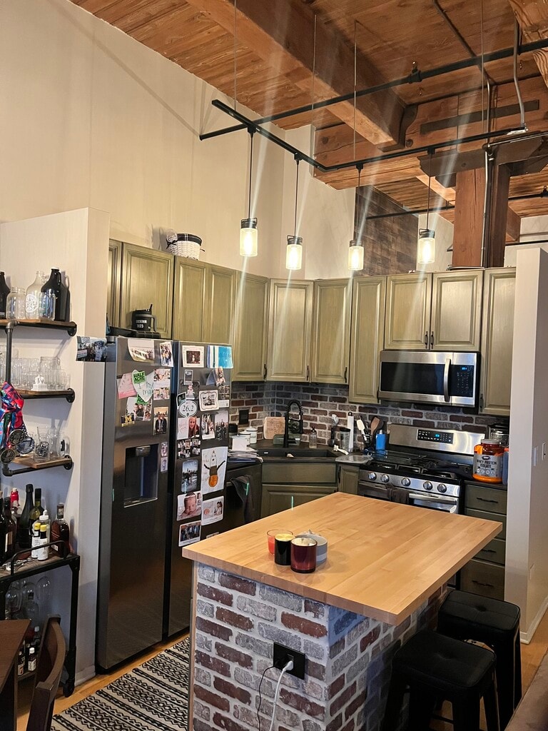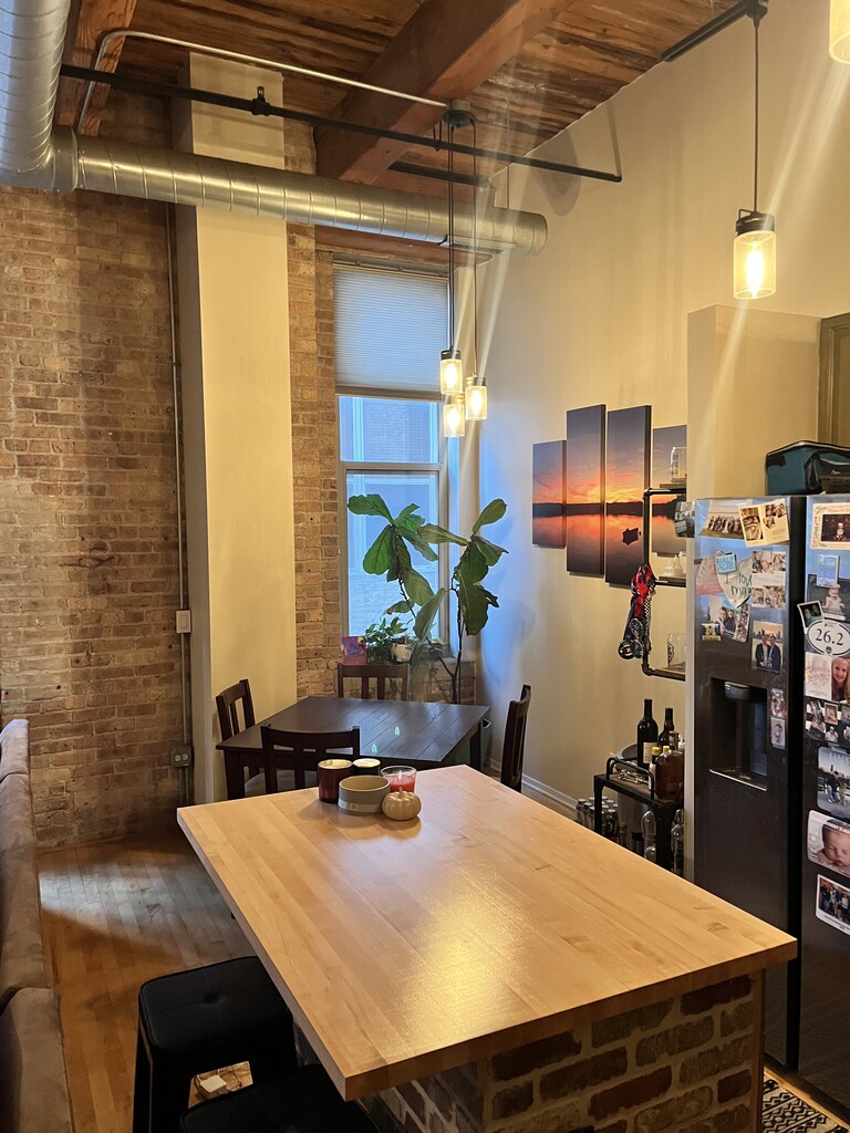 Stunning brick-and-timber loft in the heart of the West Loop with heated garage parking spot included. This light-filled, open-concept loft blends industrial charm with modern comfort perfect for anyone seeking more room to breathe than a typical one-bedroom. Soaring east-facing windows flood the space with natural morning light, while exposed brick and timber beams create an effortlessly cool backdrop. Cozy up by the gas fireplace on chilly evenings, or cook in style with sleek, modern kitchen appliances. The versatile second bedroom easily accommodates a queen bed, home office, or personal gym, giving you the flexibility to live exactly how you want. With in-unit washer and dryer, ample storage throughout, and a Nest thermostat for personalized comfort, everyday life is as convenient as it is stylish. The building offers elevator access and a doorman for added security and ease. Tucked on a quiet, tree-lined corner, you'll enjoy peaceful evenings at home while staying steps from everything that makes the West Loop unbeatable: world-class dining, vibrant nightlife, Rush University Medical Center, Googl and McDonald's headquarters, the United Center, and UIC. Commuting is effortless with the Blue and Green Lines nearby, connecting you to the Loop, O'Hare, and beyond in minutes. This is West Loop living at its finest space, style, and location all in one. Owner pays gas/electric utilities; no smoking, single small pets only- renter pays pet fee and any applicable cleaning fee for pet damage. Heated garage parking is included
