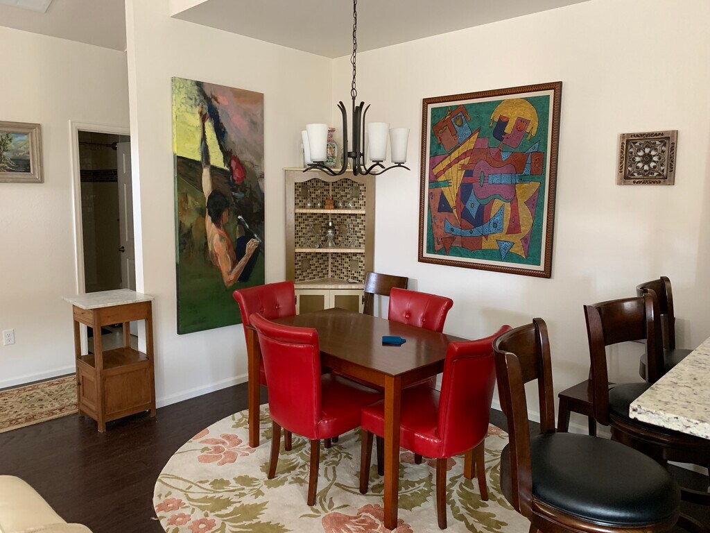 This unfurnished 2 bedroom, 2 full bathroom townhouse inside a gated community is in great condition. Enjoy a gourmet kitchen with high end finishes including stainless steel appliances, gas oven and range, a counter-depth refrigerator with ice maker, granite counter tops, a white porcelain sink, glass tile back-splash, and a granite breakfast bar with 3 barstools included. A covered patio is located off the kitchen. There are hardwood floors in the living, dining and kitchen areas, tiled floors in the bathrooms, and berber carpet in both bedrooms. Ceiling fans with remotes are located in both bedrooms and the living area. There are vaulted ceilings through out the home. The laundry room has large-capacity, front-loading washer and dryer. High-end honeycomb shades have been installed on all windows with top-down/bottom-up features to ensure both privacy and to take advantage of the large, bright, sunny windows. The shades in the master bedroom are blackout shades to insure a dark room for those who perhaps work at night and sleep during the day. The master en-suite bathroom includes double sinks, a granite counter top, bathtub, a separate shower, and a large walk-in closet. This home is located on a quiet corner within the gated Cottage Grove Community. There are remote openers for the community gate and the attached 2 car garage. No outdoor maintenance/ upkeep necessary. Numerous restaurants and a grocery store are within walking distance. Denver International Airport is only a 22 minute drive away. A Light Rail stop is 1.1 miles away. It is close enough to both I-70 and I-225 for easy access and far enough away to hear no traffic noise. This home is very close to University Hospital(2 miles), The Children's Hospital(1.5 miles), and the VA Hospital(1.1 miles) and therefore an ideal choice for someone working in the health care industry. A one year lease is required with a month to month option after the first year. If there are 2 occupants, both must sign lease. The tenant pays utilities (gas, water, and electric) and any home media/wifi. Trash, recycle, and snow removal are paid by the owner. Absolutely no smoking inside the townhouse. This home is available March 1st, 2026. The home is shown by appointment only. A background check and credit history, at the expense of the applicant, will be needed before signing of the lease. One small dog or one cat will be permitted with an additional pet deposit of $500. Renter's responsibility for any pet damage will be strictly enforced. All homeowner's association rules regarding pets must be adhered to. Deposit and rent are to be paid via Venmo or Zelle.