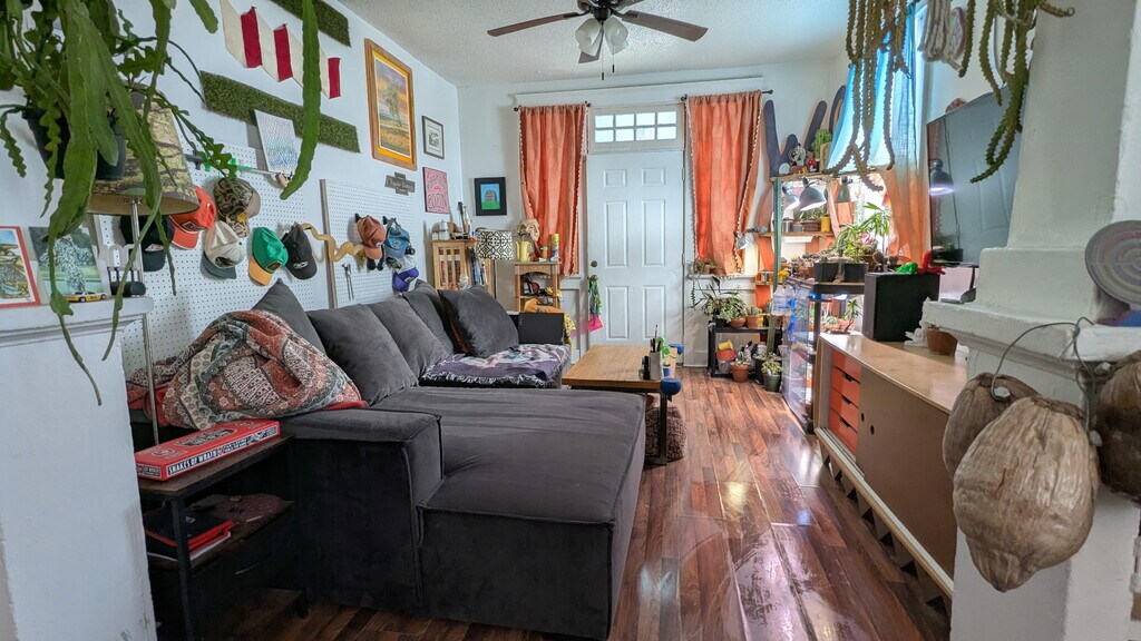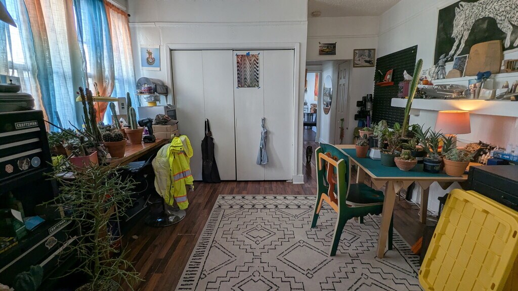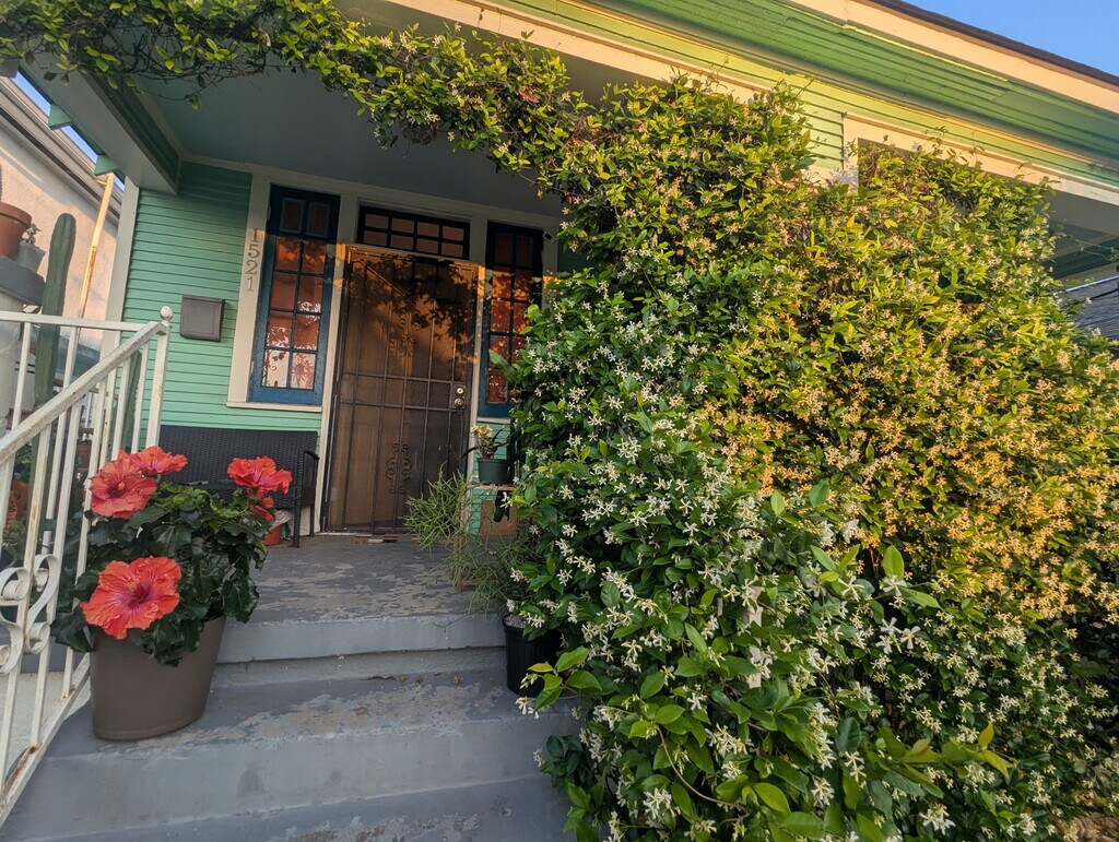 Bright and spacious half of a double shotgun on the edge of the Bywater/St. Claude neighborhoods. 2 bedrooms plus a large bonus room with a huge closet that may be used as a studio, office, extra living room, dining room, or extra walk through bedroom. Huge, fully fenced back yard planted with fruit trees and herbs, additional gardening welcome! Pets allowed upon approval/by arrangement. In-unit laundry, central heat and AC. One off-street parking space included (gravel pad next to front entry). Walking/biking distance from St. Claude Ave. Artists and musicians welcome! Owner is a community member, very responsive, only oversees this property (two units). Please contact me by text or email/rental platform message if you'd like to schedule a viewing