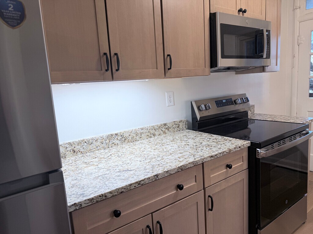 Be the first tenant in this completely renovated, 920 sq ft one-bedroom unit. Available March 15, 2026. Located in a well-maintained, privately owned four-unit brick building near the heart of Grandview. Features include original woodwork and refinished hardwood floors; renovated bath with walk-in shower; attractive, new kitchen with granite countertops and stainless-steel appliances; spacious open living room with decorative fireplace connected to large, inviting dining room that often serves as a home office. Plenty of closet space; secure, coded keyless door locks; LR and BR ceiling fans and new custom blinds on large windows. Big, dry basement with W/D hookups plus private, lockable storage. Replacement windows throughout and new efficient furnace with central AC provide low utility costs. Second-floor unit. Smoke-free interior. Cat friendly, no dogs. Free private parking in back. Tenants pay gas and electric; water and trash service paid by owners. Call Tim to schedule a tour.