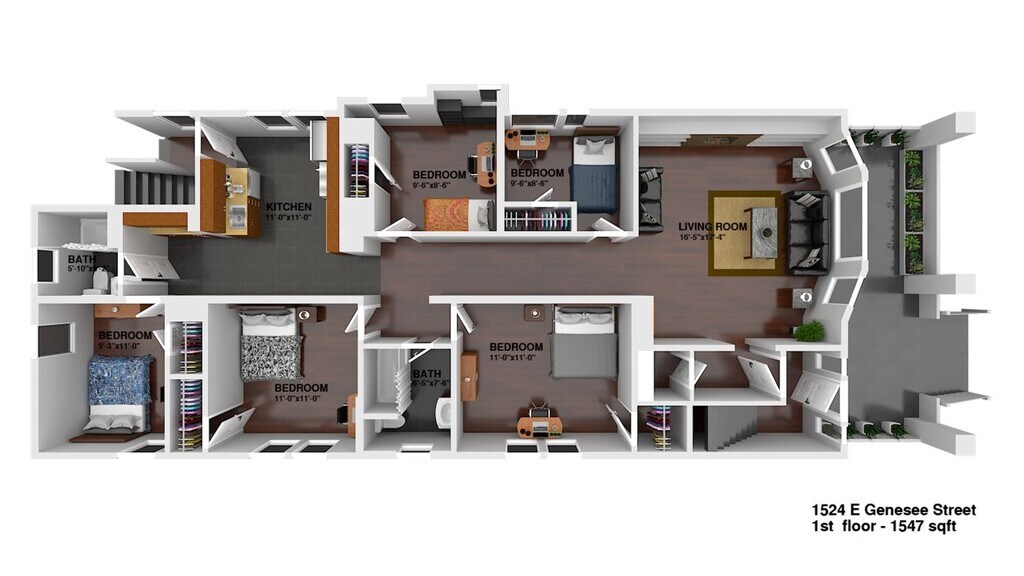 Unidad de apartamento: 1Modelo de apartamento: 1 - 1524 E Genesee St$2,7505 Dormitorios, 2 Baños, 1550 sq ftDisponible August 11, 2026![]()