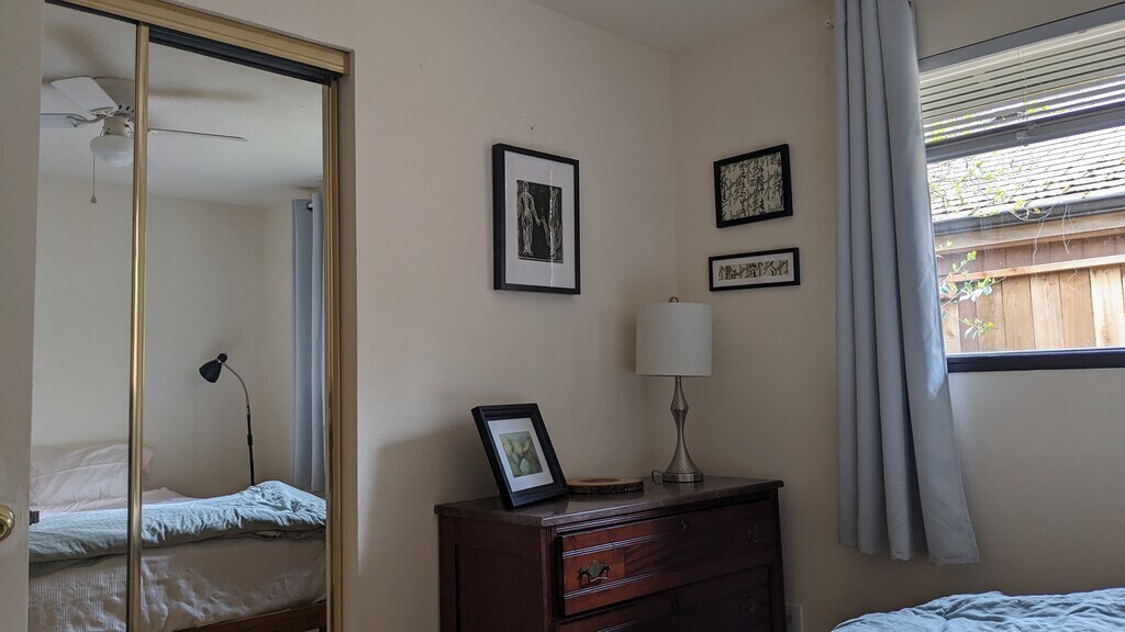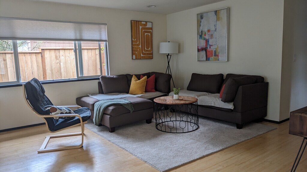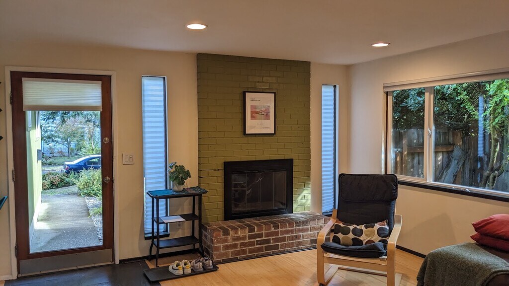 Charming ranch style duplex home, fully furnished including newer beds and linens, 2 bedrooms--bedrooms have blackout curtains, queen size bed, dressers, 1.5 bath PLUS office/or yoga room. Includes shared laundry room, private and fenced backyard, fully stocked kitchen with full set of pots and pans, new dish set, spices in cupboard, new coffee maker. In Woodlawn neighborhood. Great walking neighborhood with restaurants, coffee shops, and parks in walking distance. Grocery stores 5 minute drive. You will enjoy living in this home in a quiet and safe neighborhood with on site parking in driveway in front of house. Small pets considered on a case by case basis. Quiet established neighborhood yet most of Portland's sites are within 15-20 minutes. Woodlawn Park 5 minutes walk, coffee shop restaurants nearby. Alberta Arts district a 5 minute drive or 15-20 minute walk. House is not designer fancy but well taken care of and attractive. New bathtub and shower in main bath. For a year ong lease could be available as unfurnished