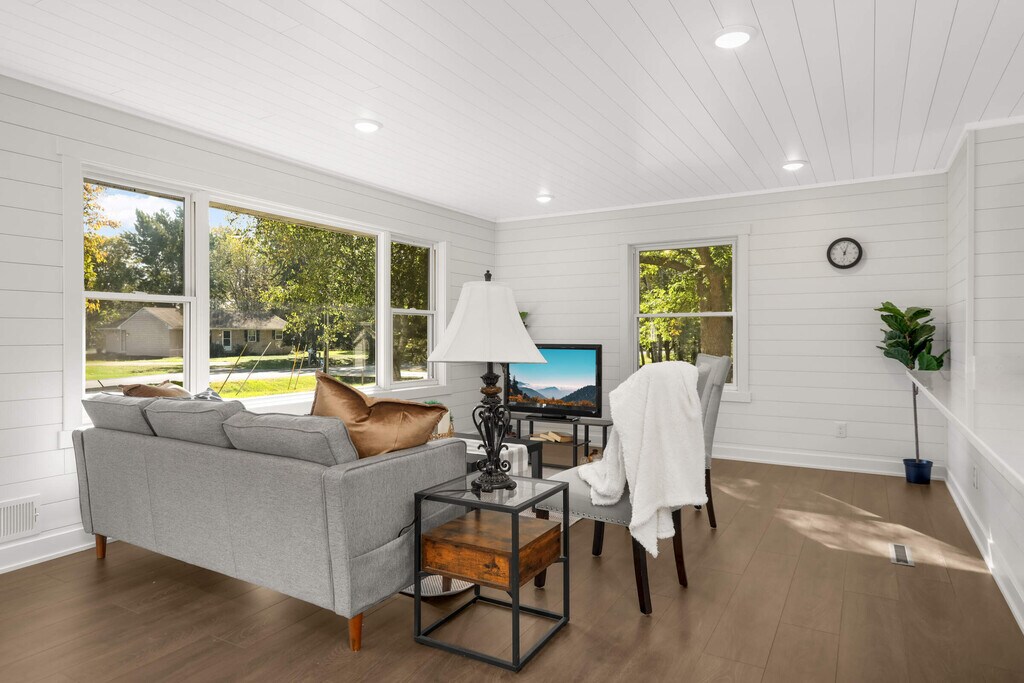 Fully renovated from top to bottom in 2025, this 2,300 sq ft home offers a modern layout, fresh finishes, and a quiet, private setting set on nearly one acre and just minutes from Hwy 10, shopping, and The Links at Northfork golf course. The main level features three bedrooms on one level, a large, remodeled full bathroom, and an open-concept living space with brand-new LVP flooring. Walls were removed to open the kitchen to the living room and vaulted four-season porch, creating an airy, connected feel. The kitchen has been completely redone with quartz countertops, brand-new cabinetry, bar seating, and stainless steel appliances. The vaulted porch, updated from a two-season room, provides bright views through to the dining and living rooms. The fully finished lower level adds a spacious family room, fourth bedroom with walk-in closet, second full bathroom, and a finished laundry room. Updates in the basement include new framing, insulation, drywall, recessed lighting, ductwork, carpet, doors, trim, and egress window. Double-pane windows throughout, primed and painted interiors, newer furnace and AC, new oversized septic system, newer private well, and updated plumbing, electrical, and HVAC ensure long-term peace of mind. The home is set back from the road on a brand new concrete driveway, with an insulated oversized two-car garage and insulated garage door completing this move-in-ready home.