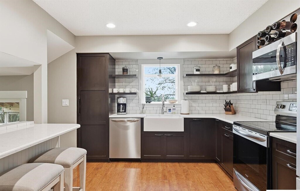 Millard schools! Kiewitt Middle School 3 blocks away! Pepperwood Village with shops, food, Bakers Grocery! Blocks to West Farm! 3 blocks off 156th and Dodge! Step into this beautifully maintained home that truly shows like a model. Fresh paint & newer carpet throughout! Gourmet kitchen has quartz countertops, 2 pantries, soft close drawers, abundant storage for culinary enthusiasts. A striking stone fireplace anchors the cozy family room, creating a warm and inviting atmosphere. Entertain with ease in the formal dining room, ideal for hosting gatherings. Throughout the home, you'll find rich wood and LVT flooring that adds both charm and durability. Step outside to the covered deck an ideal space for cookouts and social events. The finished lower level includes a dedicated craft room, offering space for creativity or hobbies. Upstairs, the primary bedroom features a new bathroom providing a spa-like retreat. Convenient laundry access on 2nd floor. New Washer/Dryer included! With heavy vinyl siding and a walk-out design, this home combines curb appeal with practical living. Don't miss your chance to live in this exceptional property.