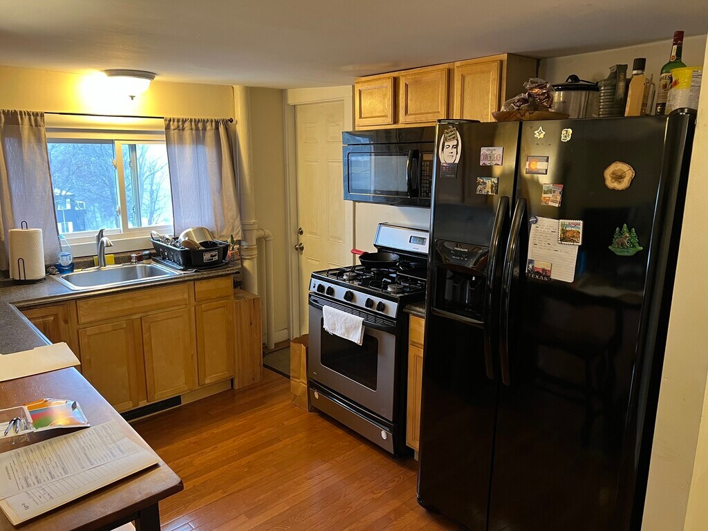 Second-floor apartment featuring 3 bedrooms and 1 bathroom. The unit includes a dishwasher, microwave, gas stove, refrigerator, and gas heat. Washer and dryer hook-ups are available. Additional lockable storage space is included in walkout basement, along with convenient off-street parking. Well-suited for comfortable everyday living. Available March 1, 2026.