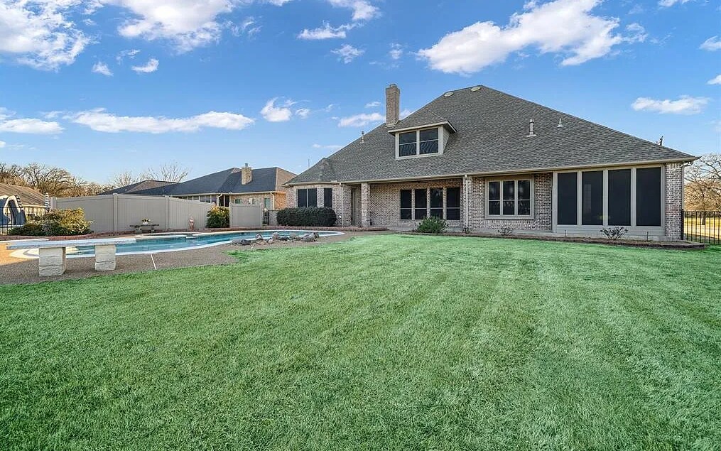 Welcome to your serene retreat at 15557 County Road 4052, Kemp, TX 75143, located in the peaceful Country Gold Estates subdivision, backing directly onto the King’s Creek Golf Club. This beautifully maintained two-story home offers 4 bedrooms, 3 full bathrooms, and approximately 4,200 square feet of living space — ideal for families, professionals, or those seeking a spacious, upscale home with resort-style amenities. Step inside to a grand entry with 10’+ vaulted ceilings, elegant arched doorways, and hand-scraped hardwood flooring that flows through formal and casual living spaces. The open kitchen and den/nook area features stainless steel appliances, a generous pantry, and beautiful views to the backyard, pool, and golf course. A stone gas-log fireplace anchors the living area, creating a warm focal point and perfect gathering spot. The primary suite offers privacy and comfort, with a recently updated en-suite bath, and the home includes a private office, media room, and game room — ideal for work, entertainment, or relaxation. Outdoors, the nearly half-acre lot delivers plenty of privacy, lush landscaping, a salt-water pool & spa combo, and a screened porch plus a large covered patio — perfect for entertaining, lounging, or enjoying quiet views of the golf course green. Additional highlights include an oversized attached garage, carport with RV access/parking, and recent upgrades for peace of mind (roof, insulation, HVAC, etc.). Located just minutes from I-175, downtown Dallas is within commuting reach, and Cedar Creek Lake boat ramps are nearby for weekend escapes. This home offers country club surroundings, lake access, and upscale living, yet remains conveniently connected to the Dallas-area amenities.