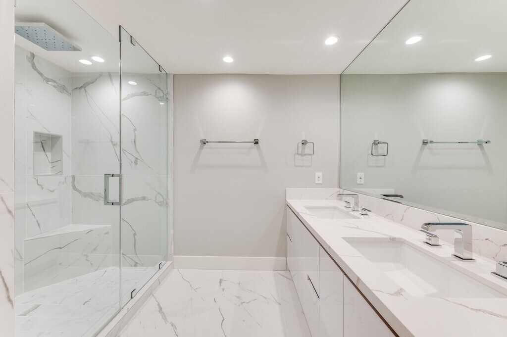 Completely Remodelled, updated and redesigned with new top of the line stylish modern finishes. Spacious light and bright front unit facing Century City. Open space concept living and dinning room that opens to large front balcony facing Century City. Large size breakfast room adjacent to kitchen in addition to formal dinning room. This is perfect unit for entertaining large crowed. Featuring large 2 bedrooms and 2.5 baths, walk in closet in master suite and extra large master bath shower. Modern style kitchen with top of the line appliances. Newly installed stylish double pane windows and doors, and wide plank flooring and recess lighting through out unit. Private laundry room inside unit with new side by side washer and dryer. Two side by side parking in secure gated garage. Walking distance to Century City shopping centre. You will love this unit on your first Walk-in tour.