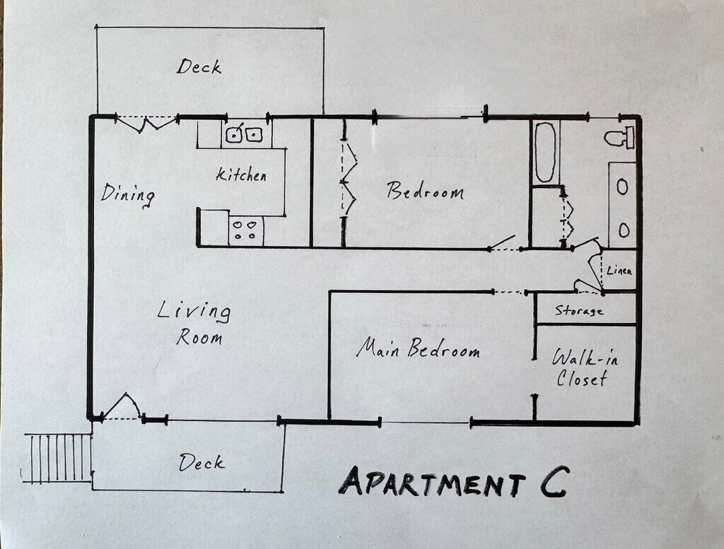 Two-bedroom apartment with new flooring, carpet, and fresh paint. This large second-floor unit is 940 sq ft PLUS two large decks -- one at the entrance and another through the dining room's French doors. Off-street parking is included. Coin laundry is available in the building ($1/load). Through-the-wall air conditioner in the living room. Rent includes all utilities except electricity. This apartment is conveniently located in Tukwila near I-5, I-405, and SR 518 as well as the Rapid Ride F line (5 minute walk) and Link Light Rail (International Blvd Station, 12 minute walk). Criteria include income at least 2.5 times the rent, $40 application fee for credit check, 625 credit score, tenancy verification, employment verification, and criminal background check. Lease signing requires first month's rent plus $1,500 security deposit. Tours by appointment. Contact owner for tour. Online application and leasing process available after touring the property. Feel free to reach out with any questions.