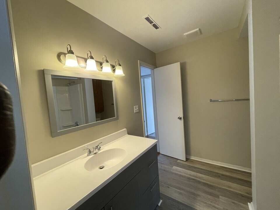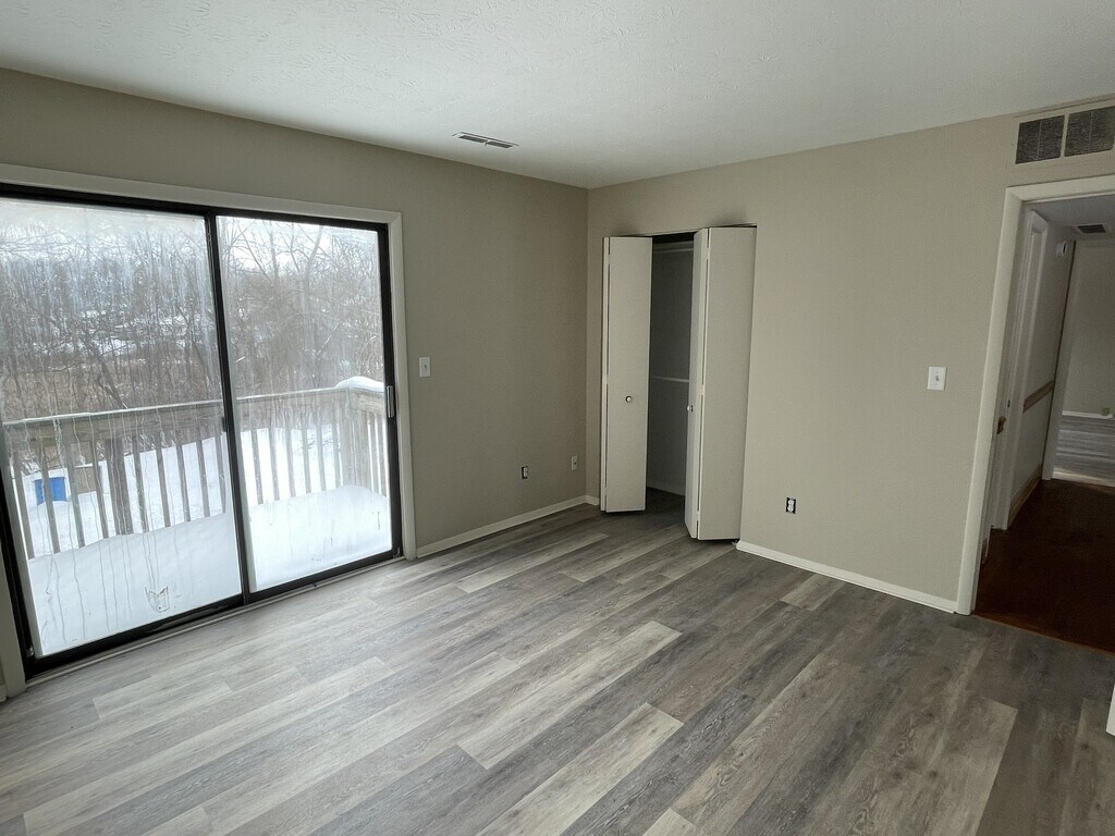 First floor apartment nestled on a wooded lot. Apartment features an open floor plan with abundant nature light from large windows. Updated kitchen with new appliances and an attached laundry room with washer and dryer hookups. Bedroom 1 features an attached bathroom, and bedroom 2 has its own private patio. Apartment is located minutes from grocery stores, restaurants and hiking trails.